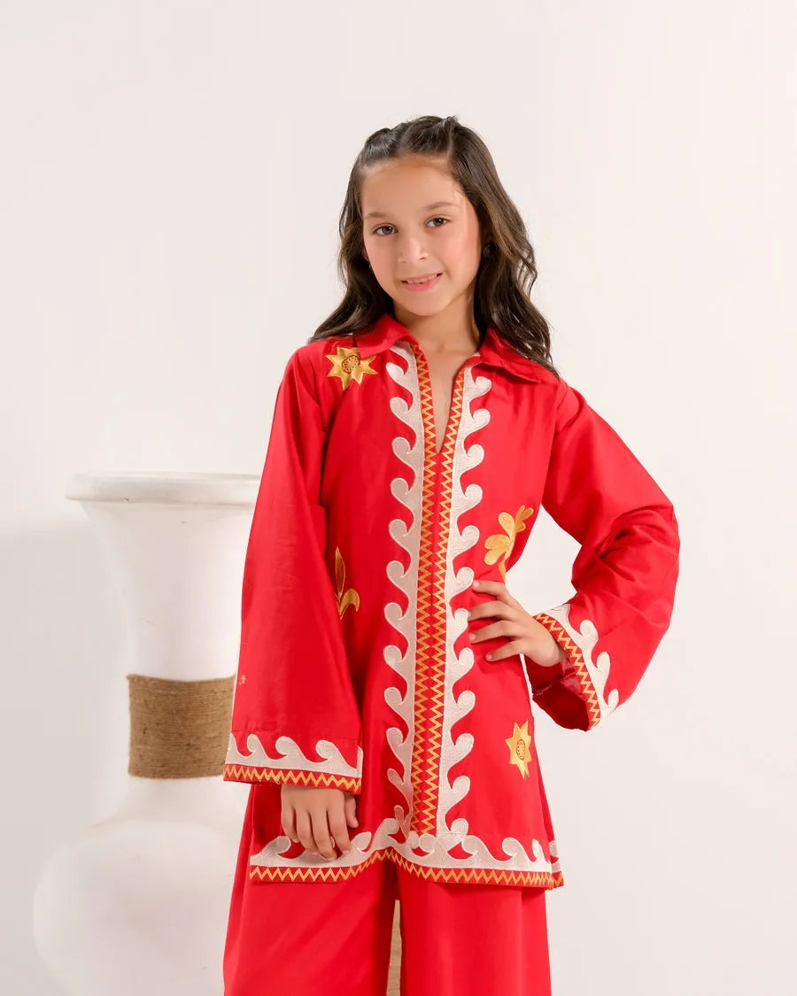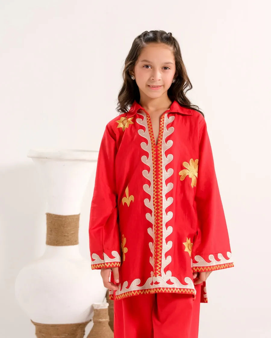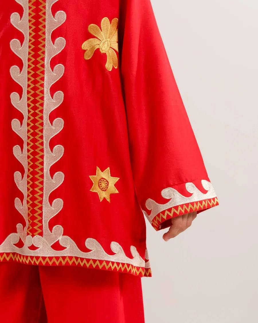 Crimson Vine White - 2pcs - Embroidered