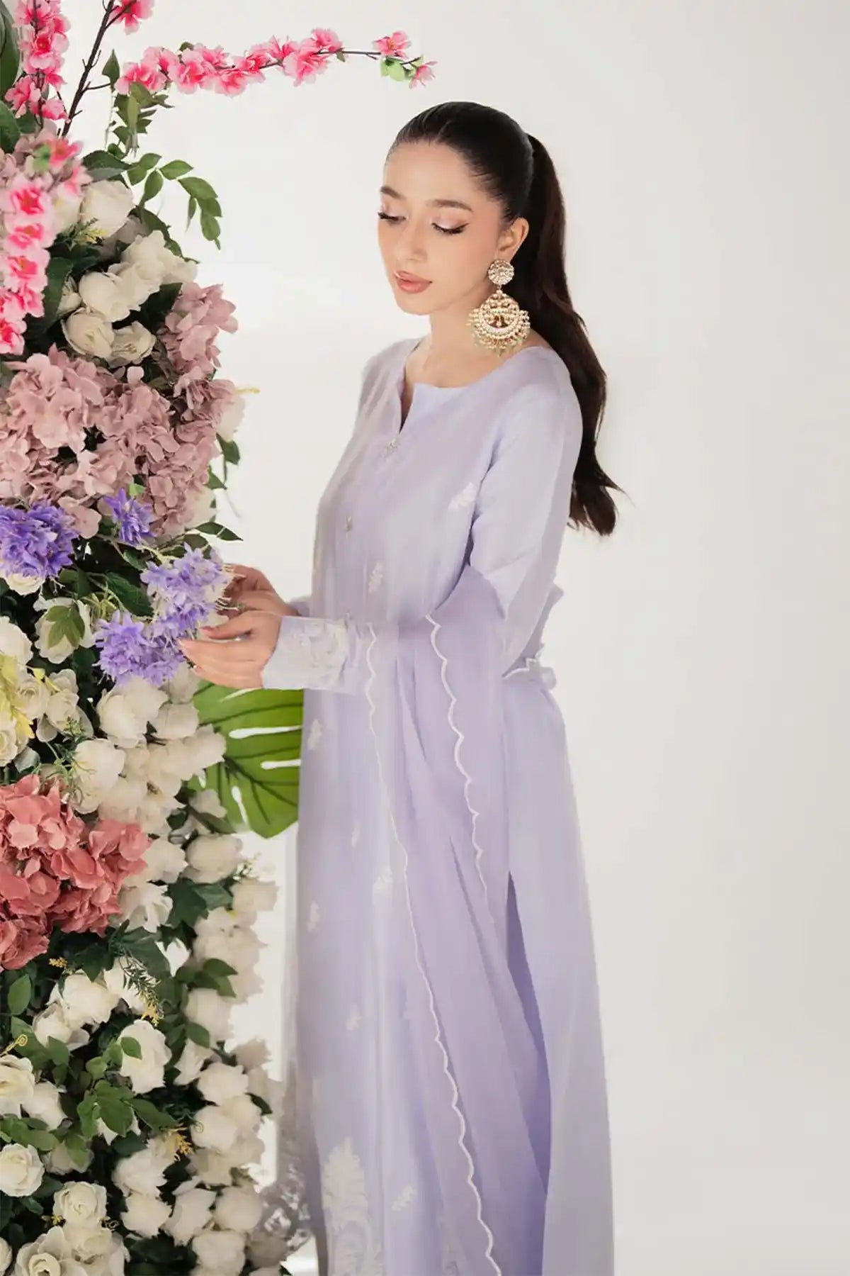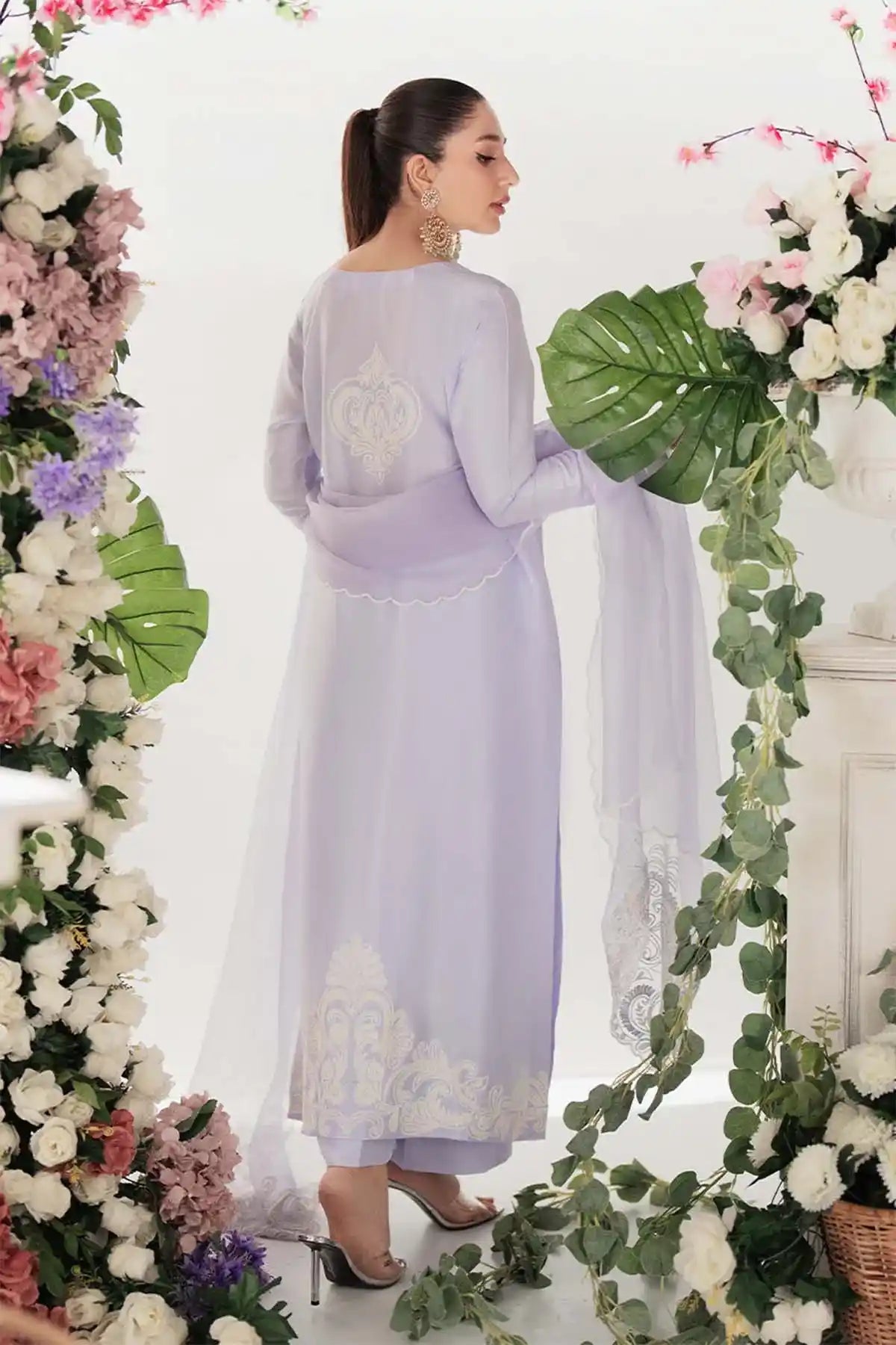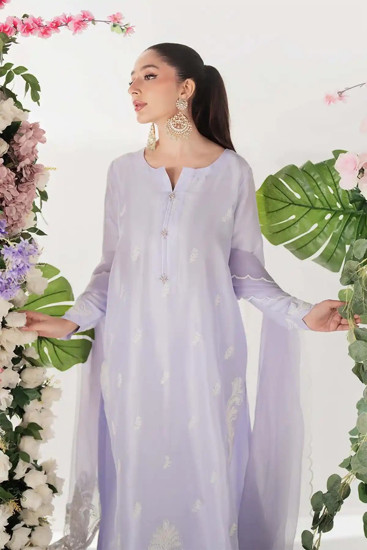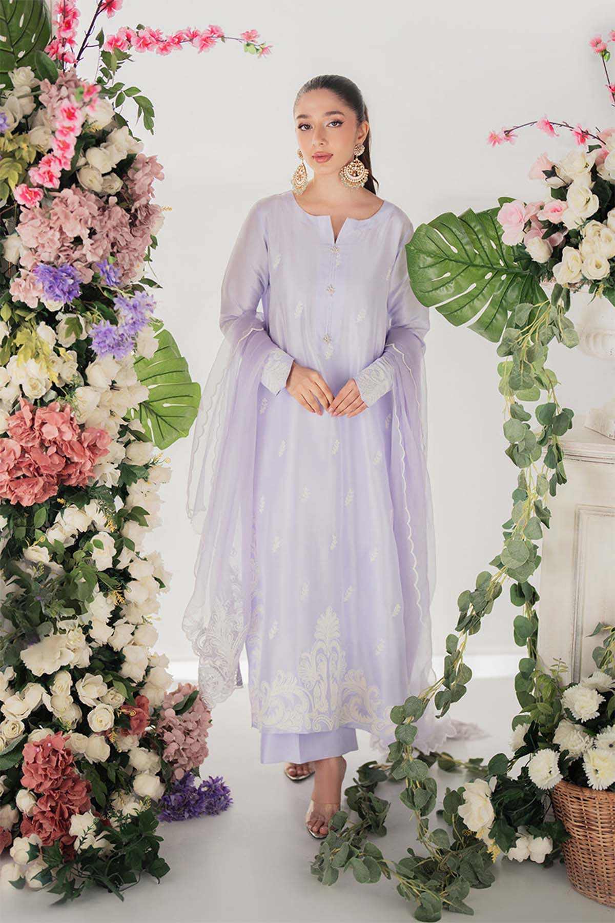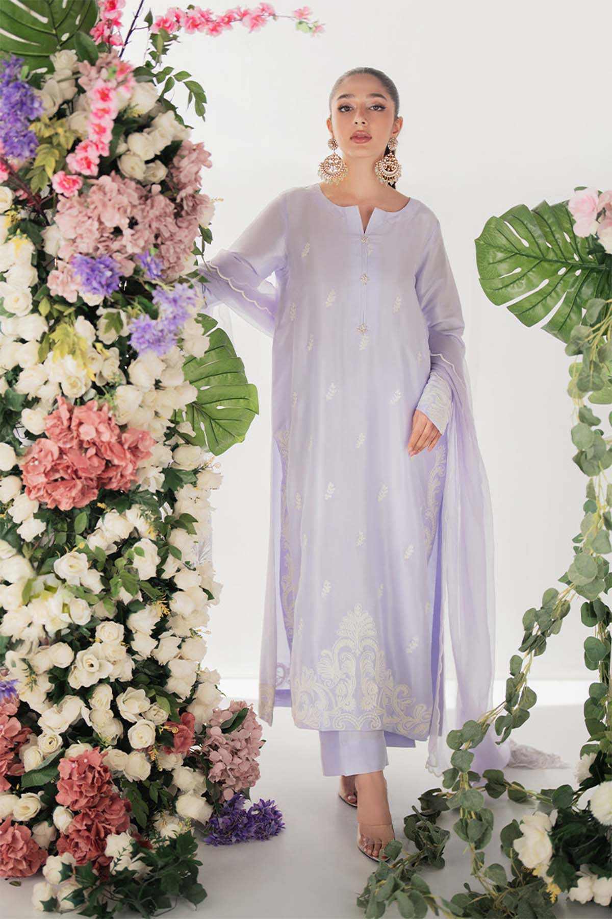 This Beautifully Tailored Panel Shirt Is Crafted With Intricate Ari Embroidery On Both The Front And Back, Creating A Delicate Yet Luxurious Look. Embroidered Buttons Add A Refined Touch, While The Ensemble Is Completed With Straight Pants And An Ethereal Embroidered Organza Dupatta. A Carefully Placed Embroidered Bunch On The Back Adds To The Ensemble’S Charm, Making It A Perfect Blend Of Grace And Sophistication.