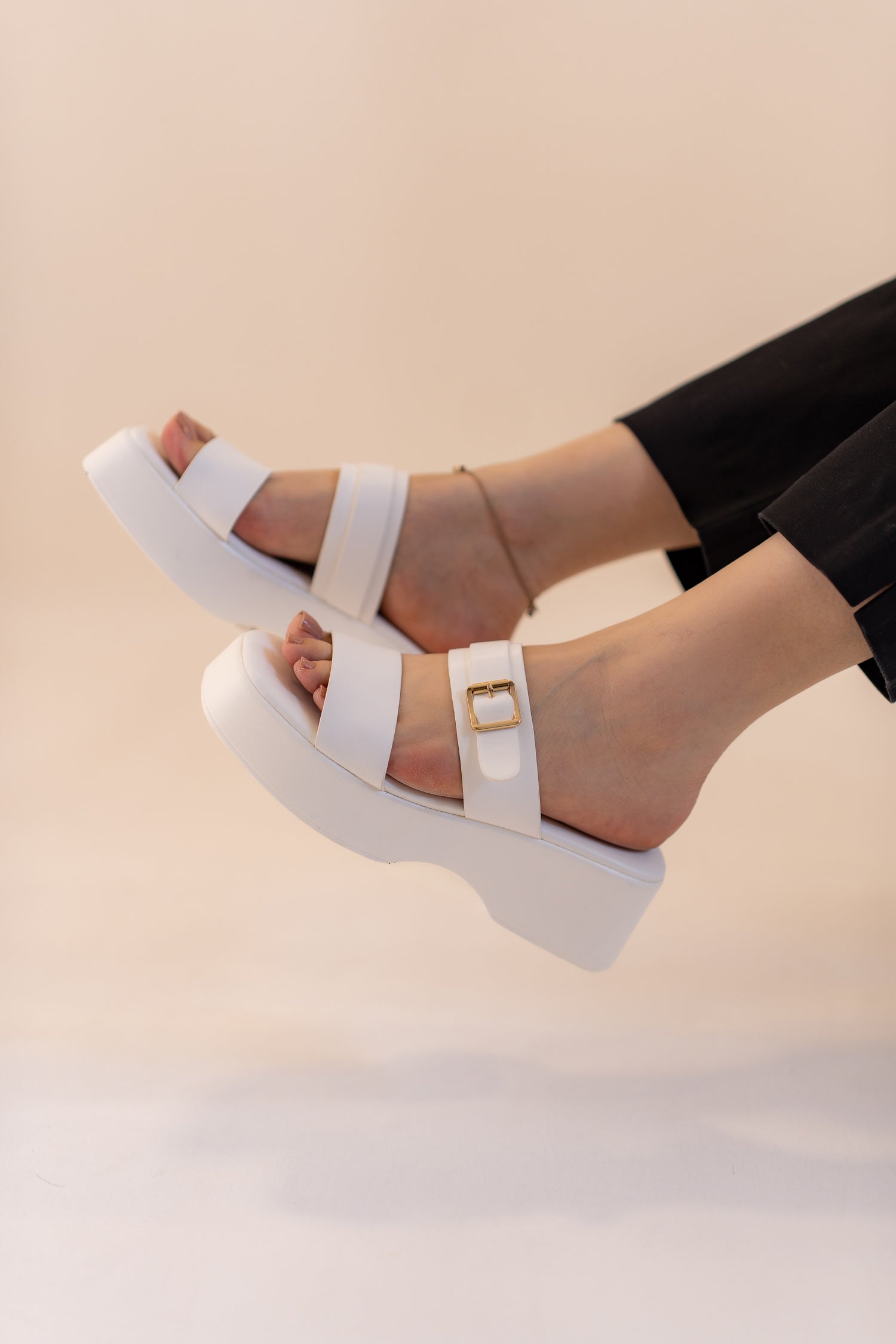 White Chunky Buckle Flats