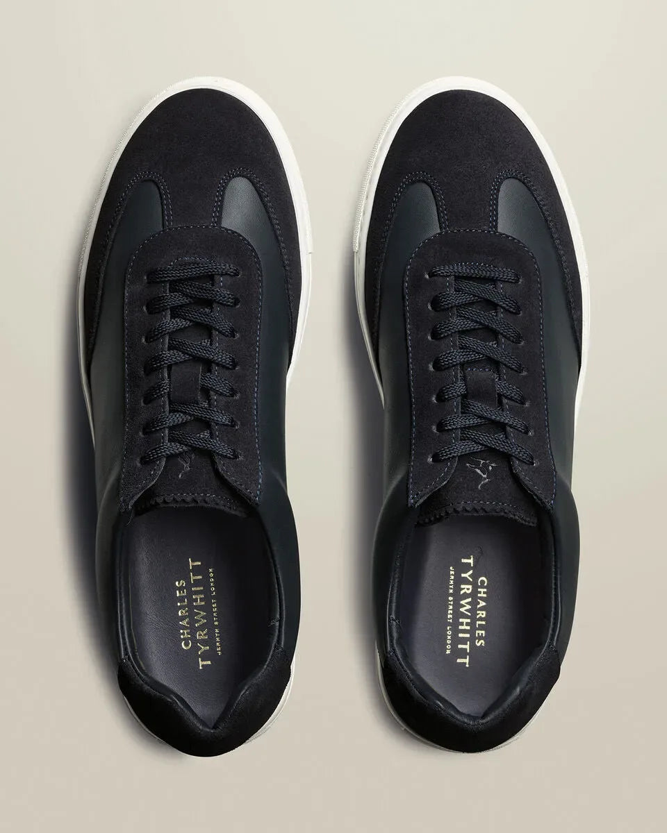 Navy Leather And Suede Trainer
