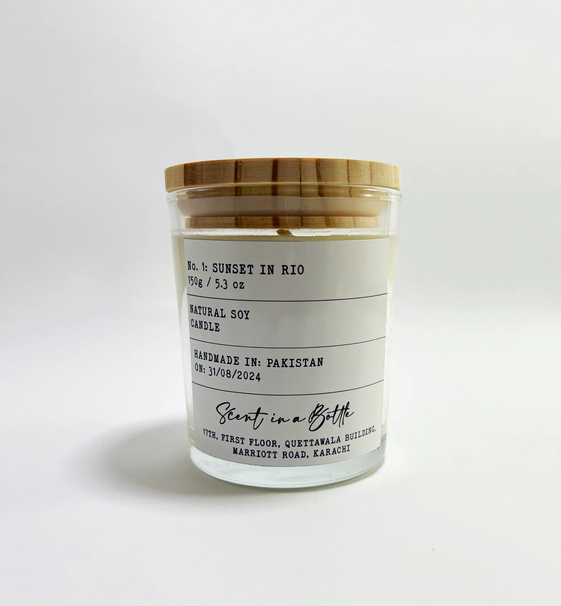 Experience the vibrant energy and golden hues of a tropical evening with Sunset in Rio. This captivating scented candle blends zesty citrus notes of sun-ripened oranges and tangy passionfruit with a touch of sweet guava and creamy coconut. Hints of warm amber and exotic sandalwood evoke the romance of twilight on Rio's sun-drenched beaches.