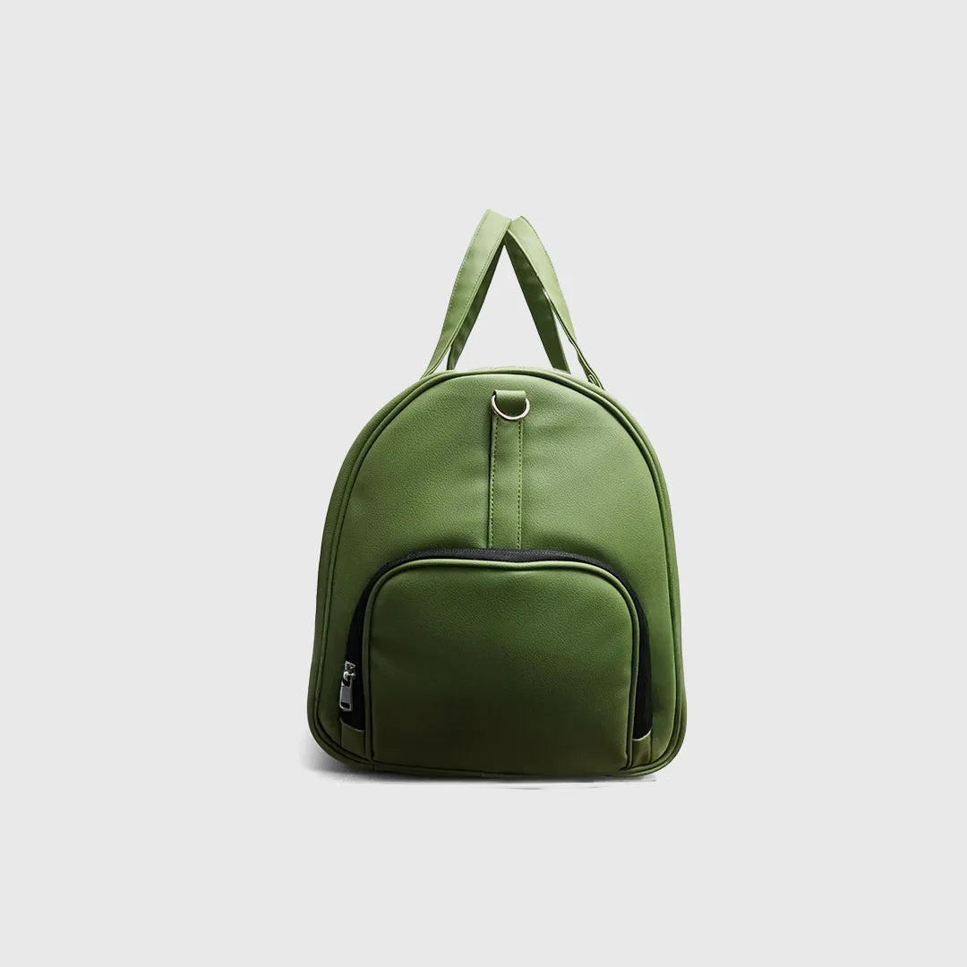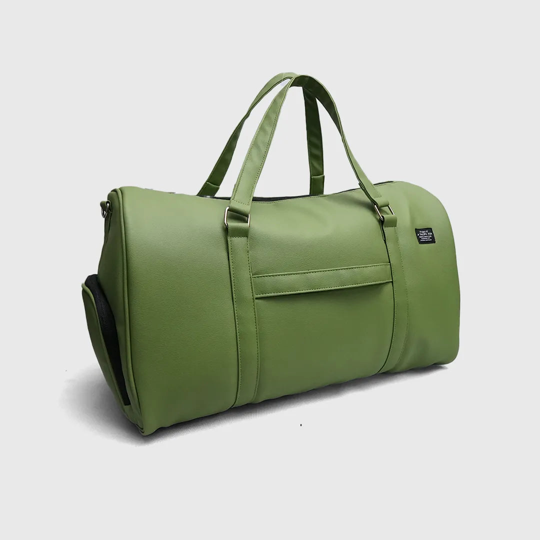 The Everest Weekender Duffle combines a bold green tone with a structured, modern silhouette — making it the perfect travel and gym essential. Crafted from high-quality textured faux leather, this bag delivers durability, spacious storage, and effortless style in one clean design.