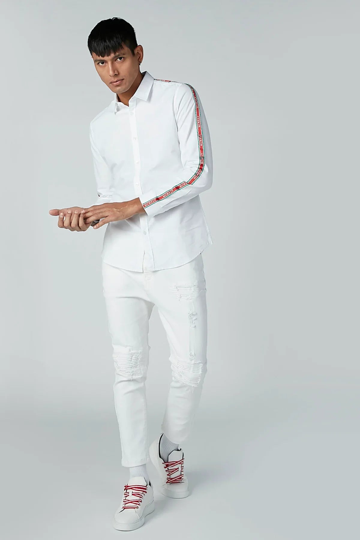 Premium quality Splash Men Ripped Denim Jeans with 5-Pockets and Button Closure White color