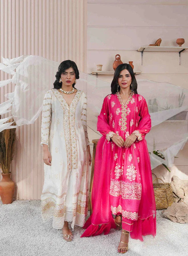 Complete the ensemble with our raw silk pants and a flowing organza dupatta (as shown) for a standout look. With a gown length of 58 inches, this outfit offers a refined silhouette, perfect for making an elegant statement on any occasion.