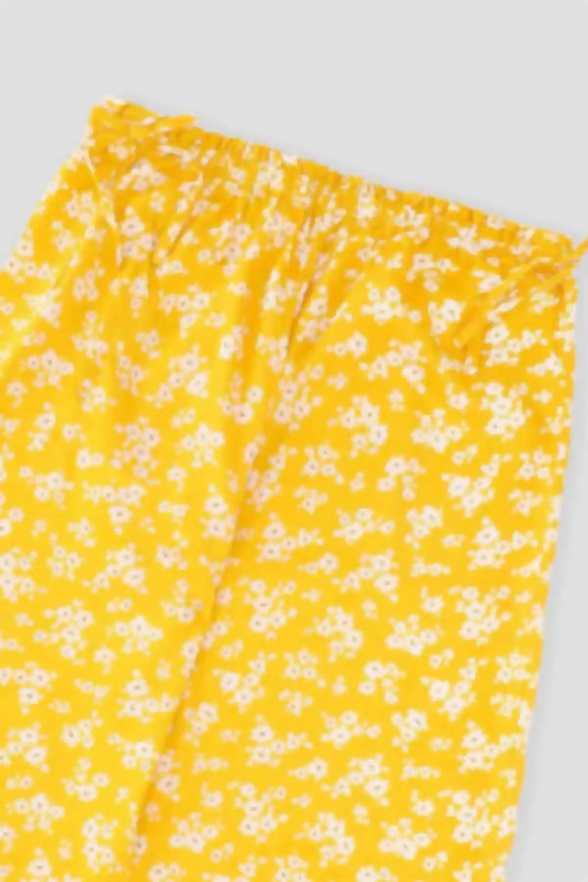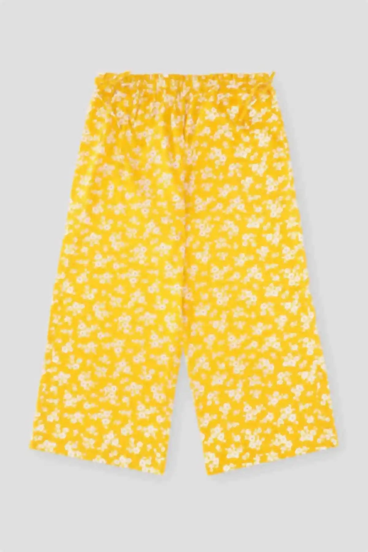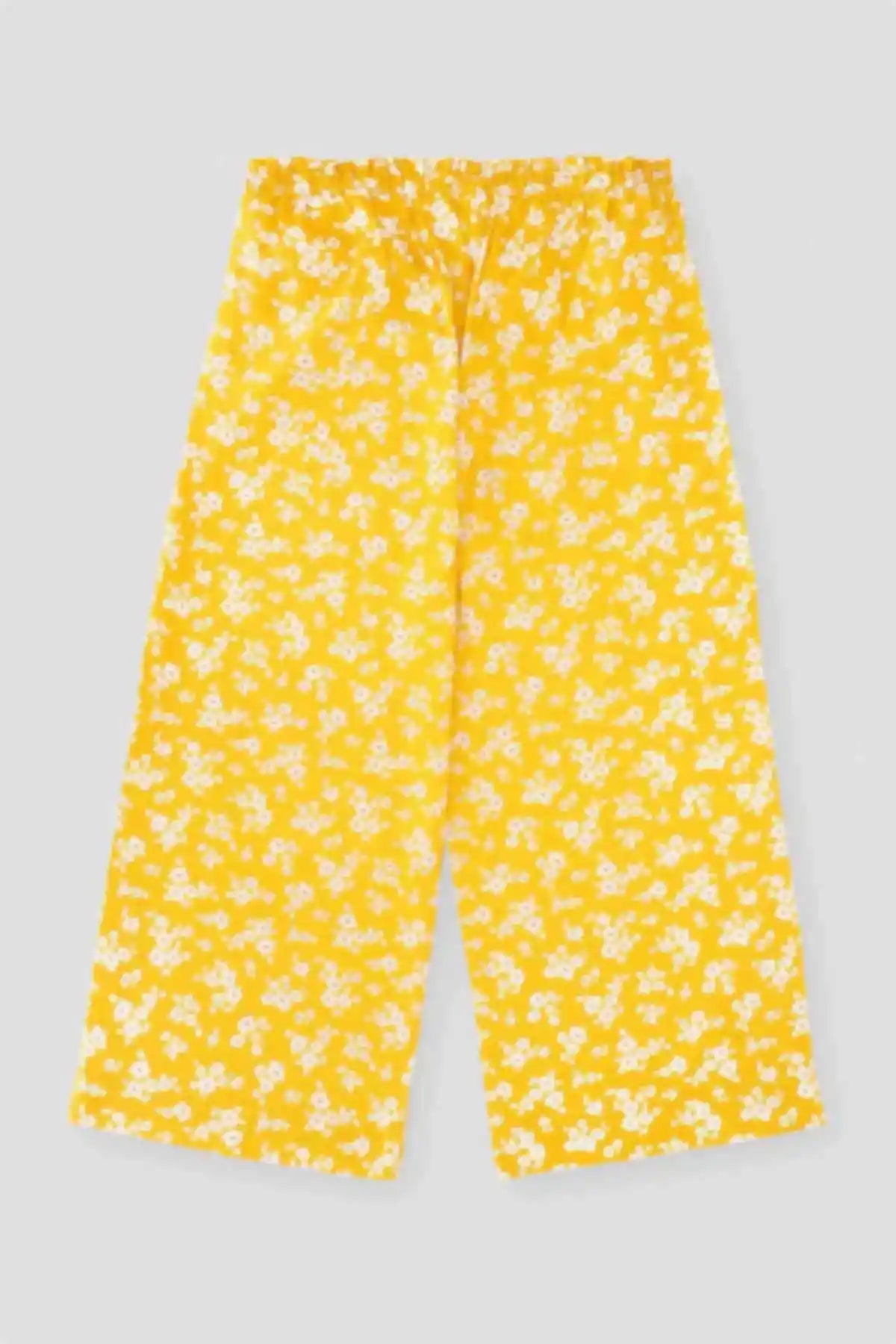 100% Viscose. Casual Printed Wide Legged Pant Featuring Elasticated Waistband With Side Tie Knots.