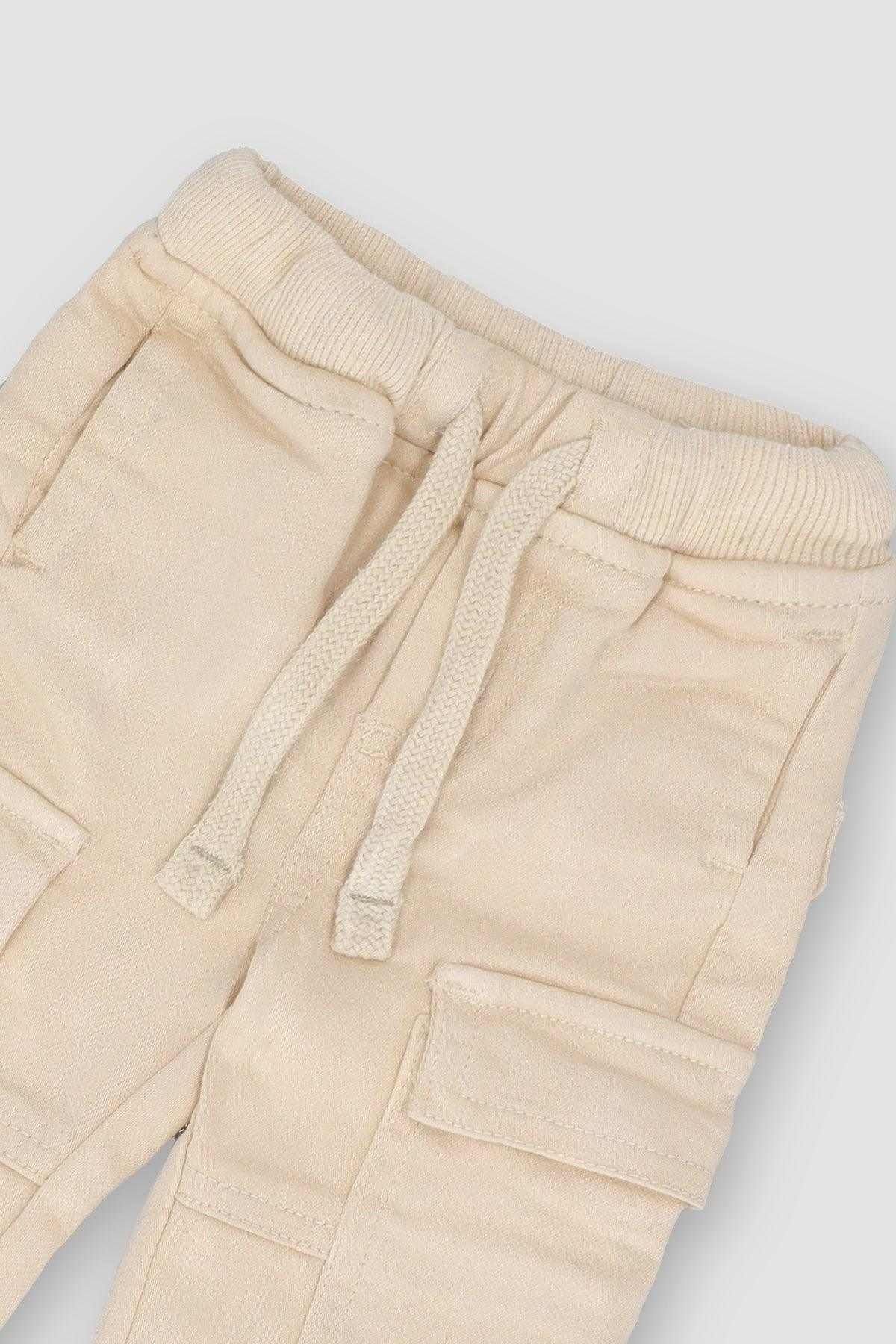 69% Cotton 29% Polyester 2% Elastane. Comfortable Cargo Pants With Drawstring Waistband And Elastic Hem. Featuring Front Welt Pockets, Utility Pockets And Back Welt Pocket With Flap.