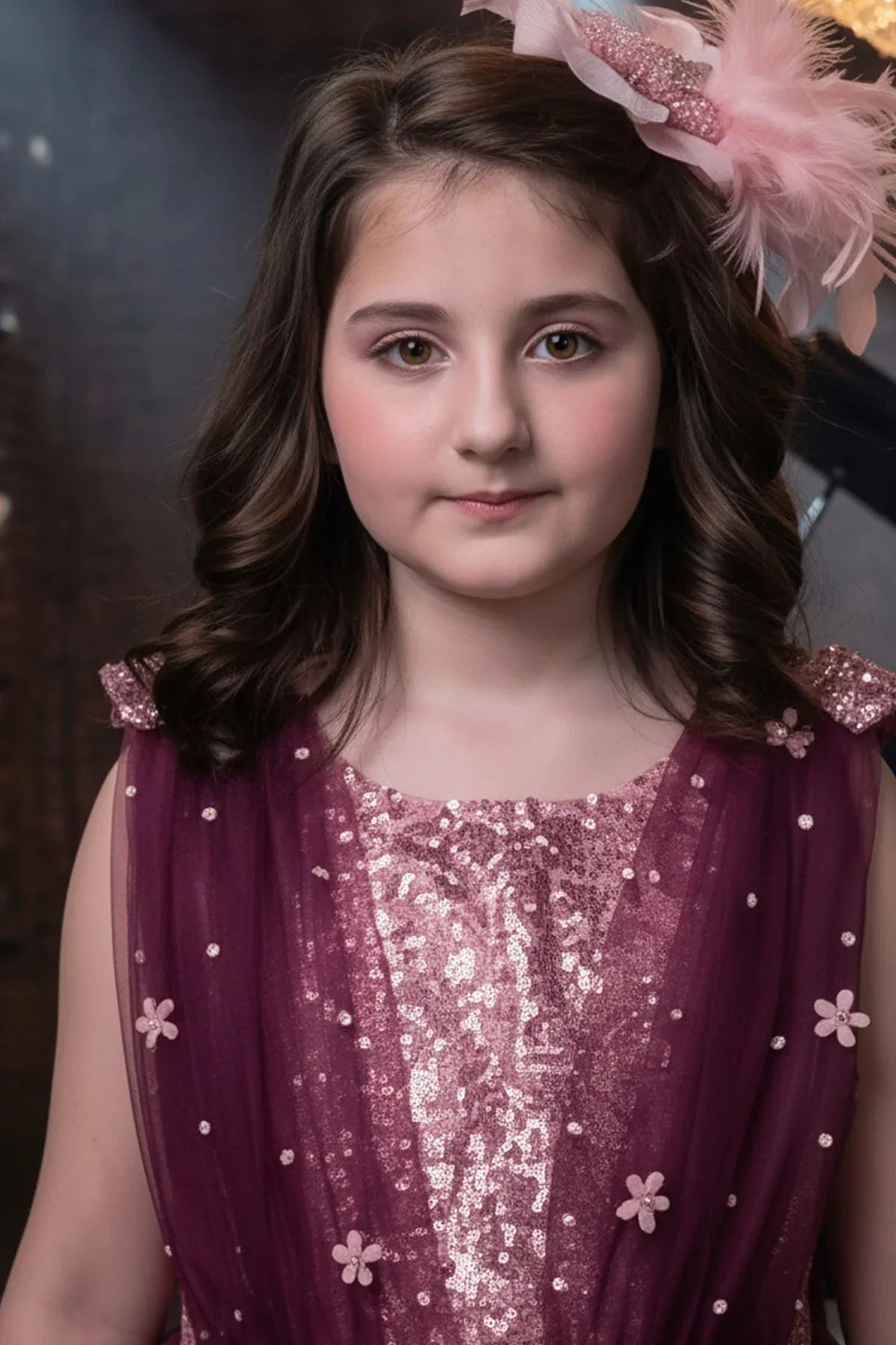 Introducing The Plum Queen'S Royal Attire, A Resplendent Masterpiece That Combines Regal Charm With Timeless Elegance. The Enchanting Color Palette Of Plum And Pink Sets A Majestic Tone, With A Breezy Net Forming The Base, Creating A Dreamlike Quality. The Inner Layer, Crafted From Sumptuous Silk, Adds A Touch Of Luxury To The Ensemble.