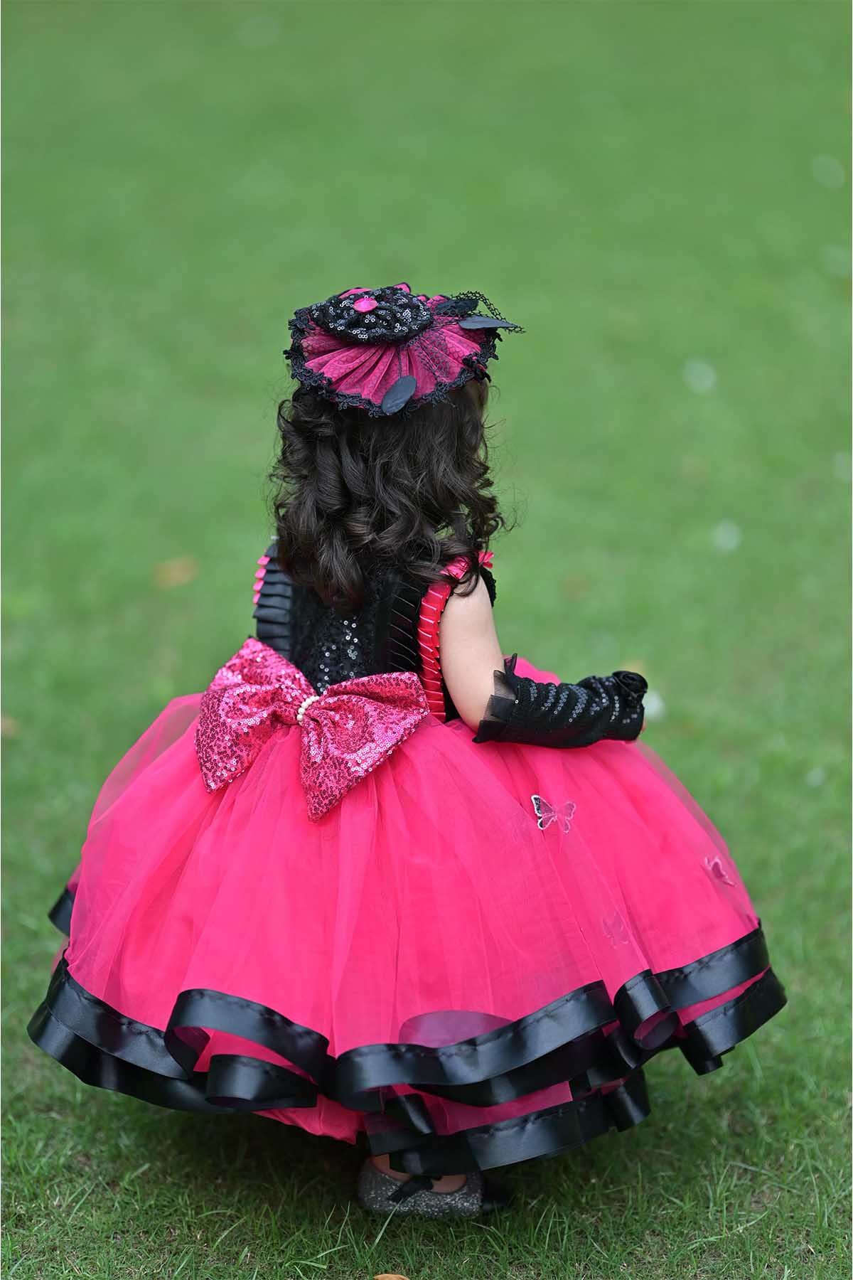 The Inner Lining Of The Frock Is Fashioned From Luxurious Silk, Providing A Comfortable And Smooth Feel Against The Skin. To Add A Whimsical And Playful Element, The Frock Features Intricately Designed Sequins 3D Bows And 3D Butterflies, Adding A Touch Of Enchantment And Femininity To The Overall Design.