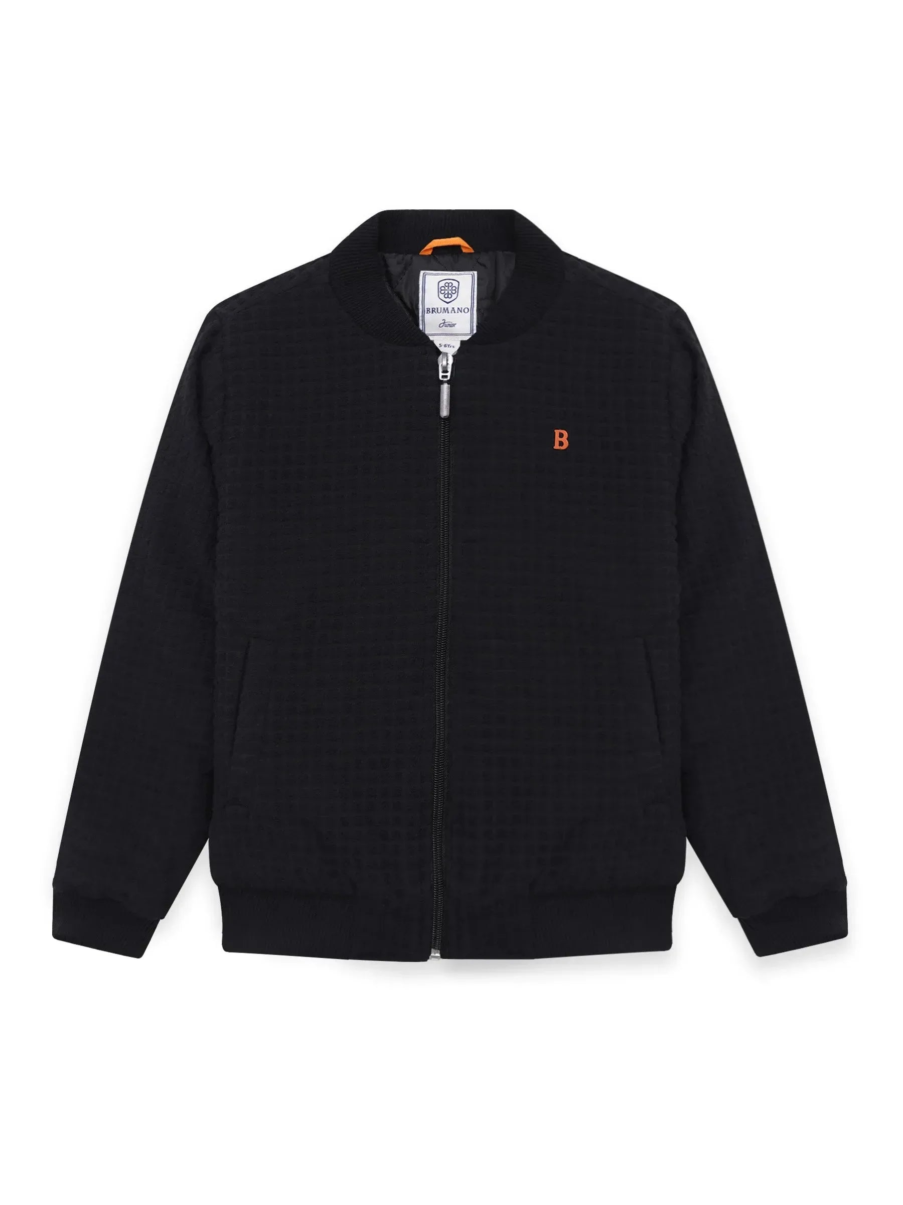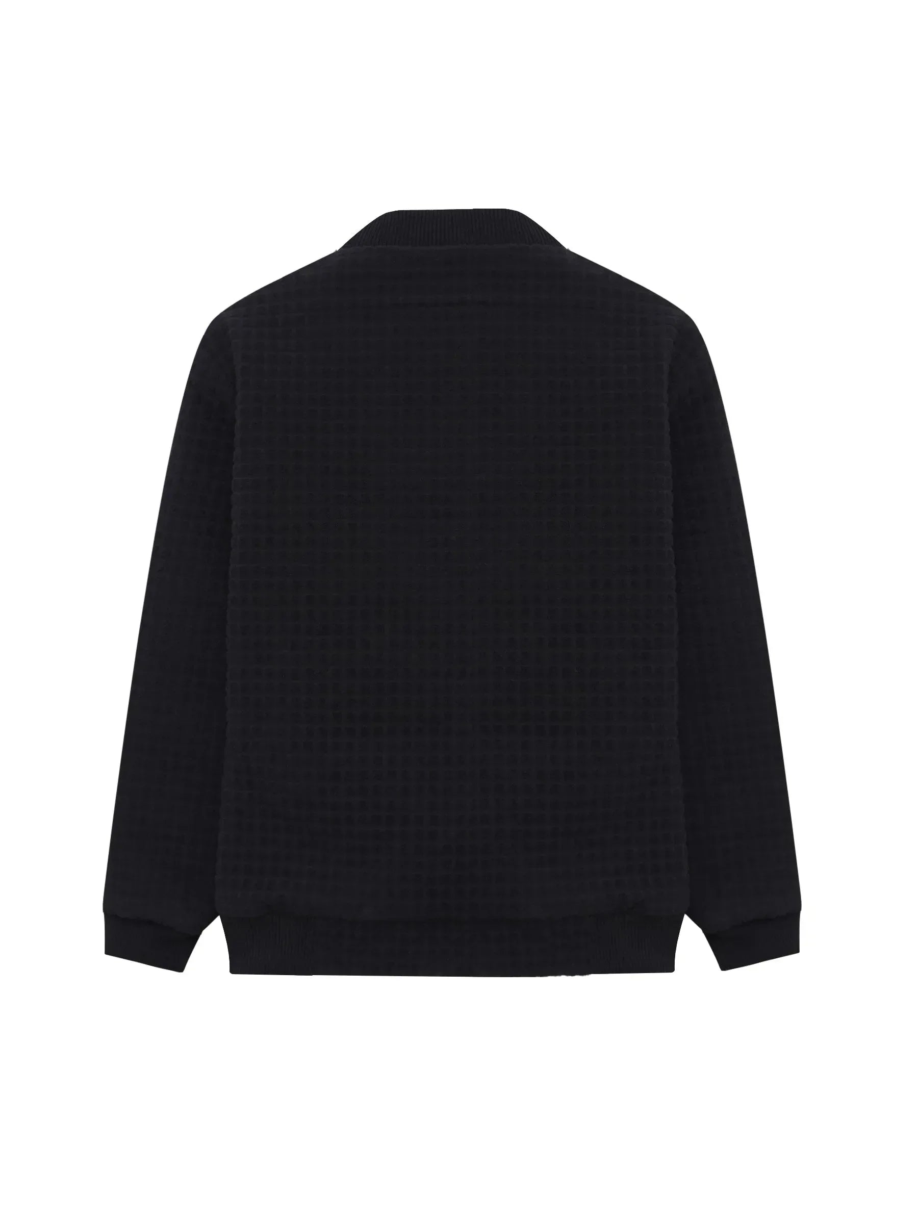 Black velour textured quilted bomber jacket brings cosy warmth with a luxe finish. Made in soft velour with textured quilting, it features a classic bomber shape, zip-front closure, and ribbed trims for a snug, comfy fit—perfect for everyday winter styling.