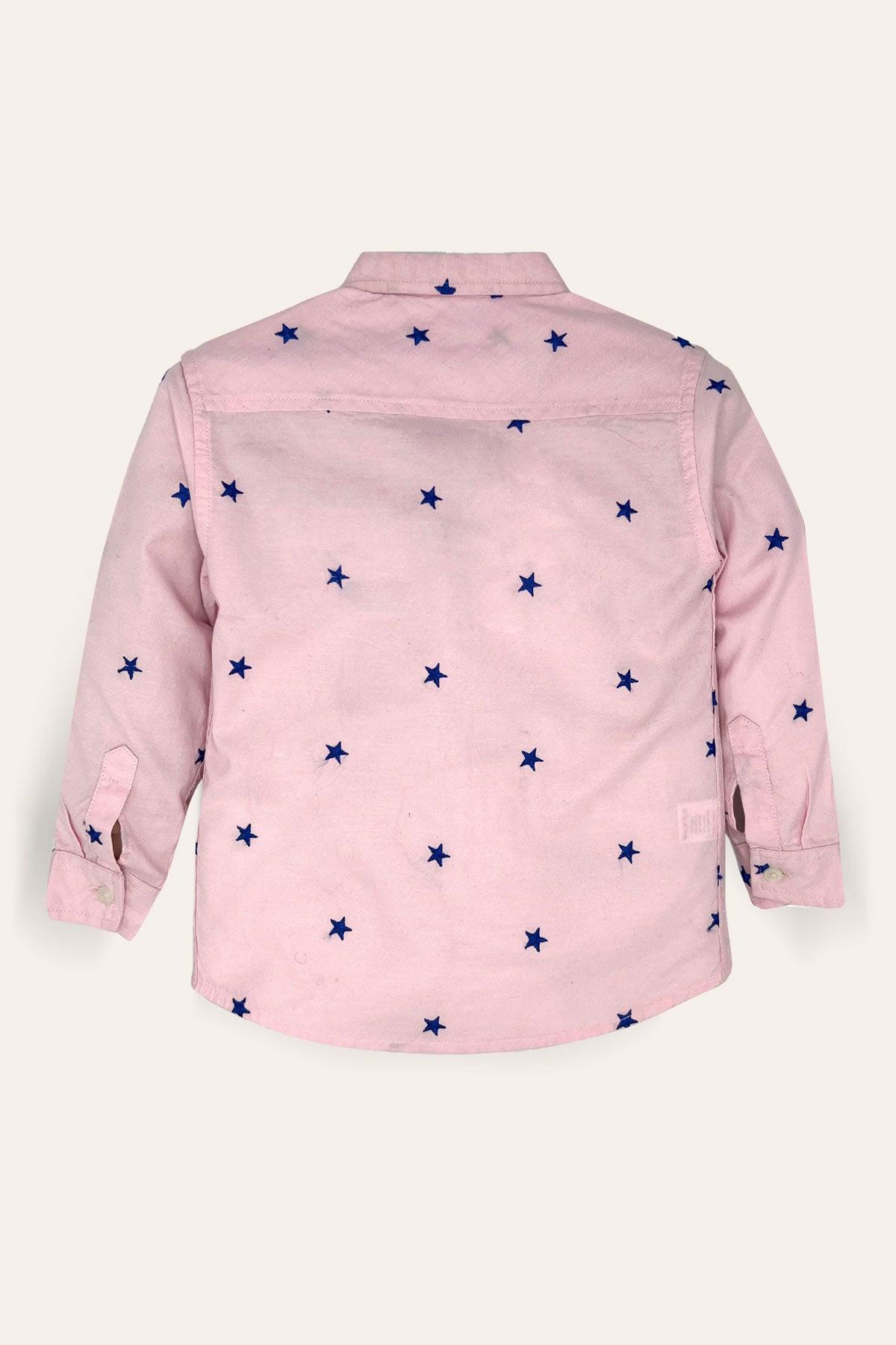 Star Patterned Embroidered Shirt Crafted From Soft Cotton Chambray In Light Pink.