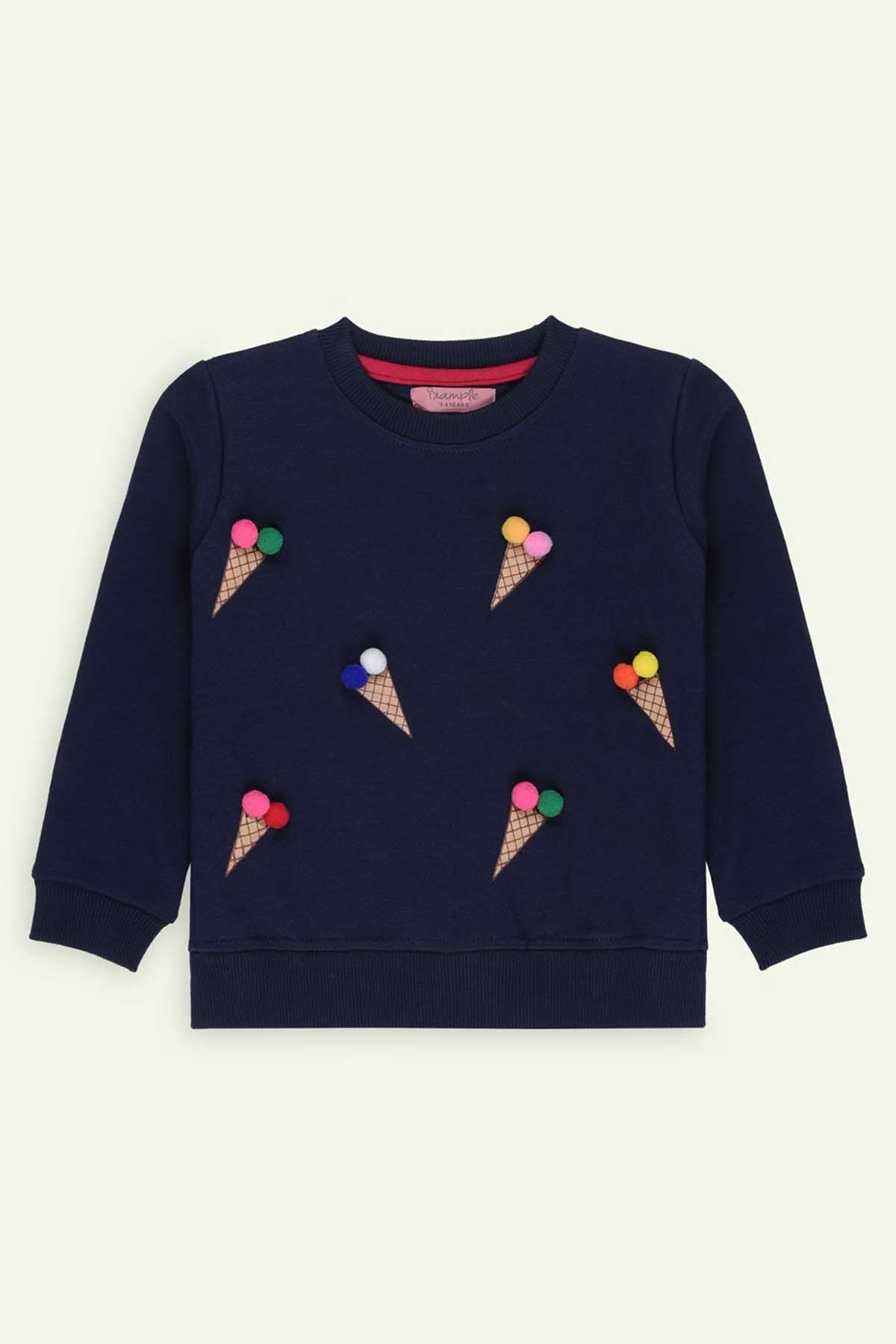 Keep Your Little One Cozy And Cute With Our Navy Waffle Printed Sweatshirt, Designed For Both Comfort And Charm Made From Soft, Textured Waffle Fabric, It Offers Warmth Without Compromising On Style. The Playful Pom Pom Detail Adds A Fun Twist, Making It A Perfect Pick For Everyday Wear Or Casual Outings.
