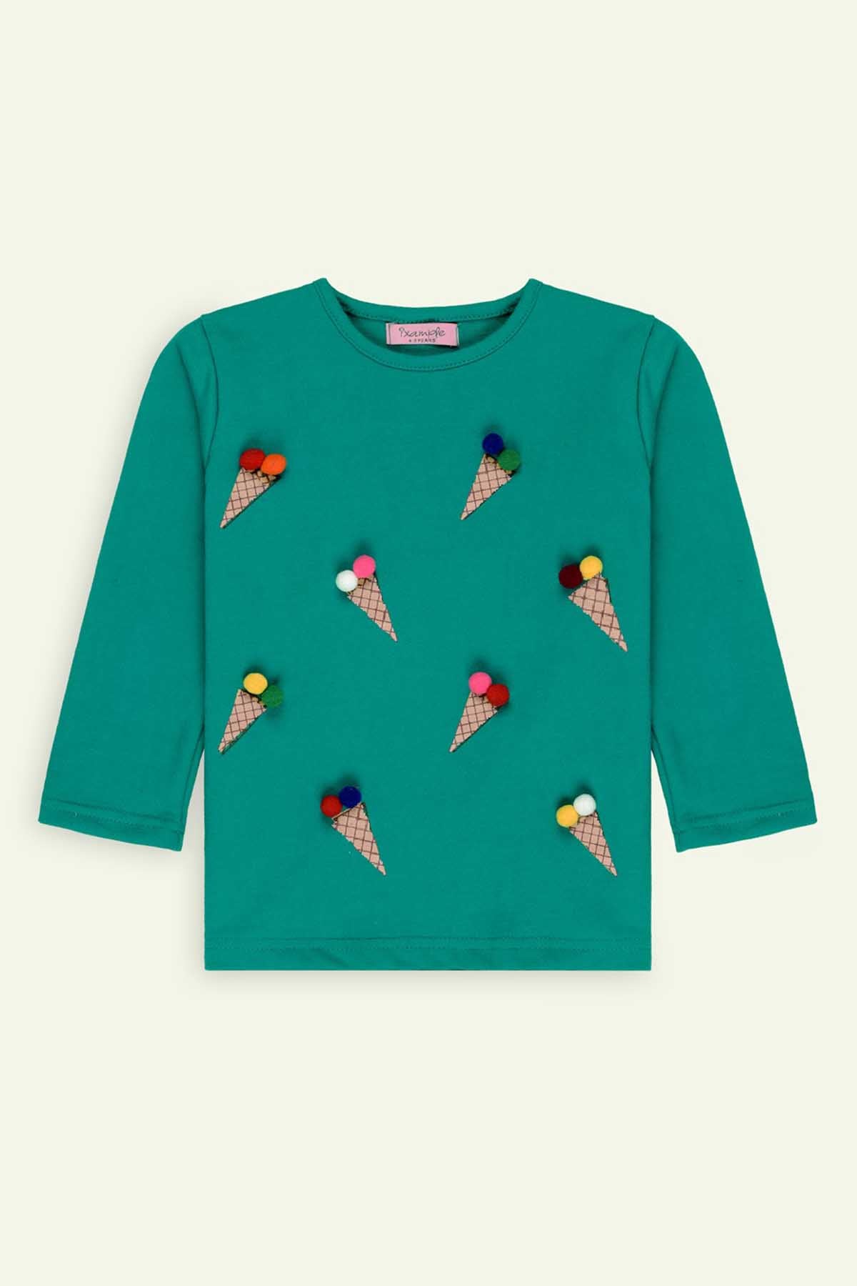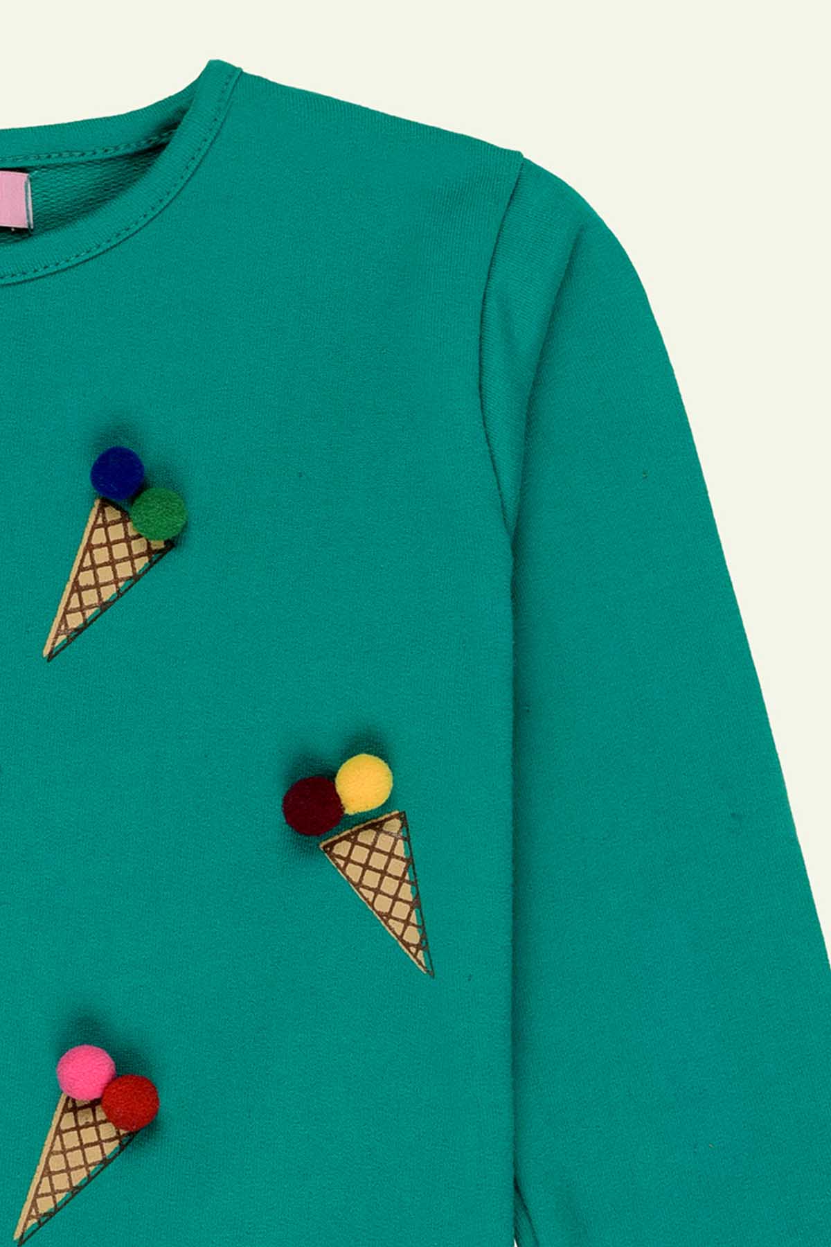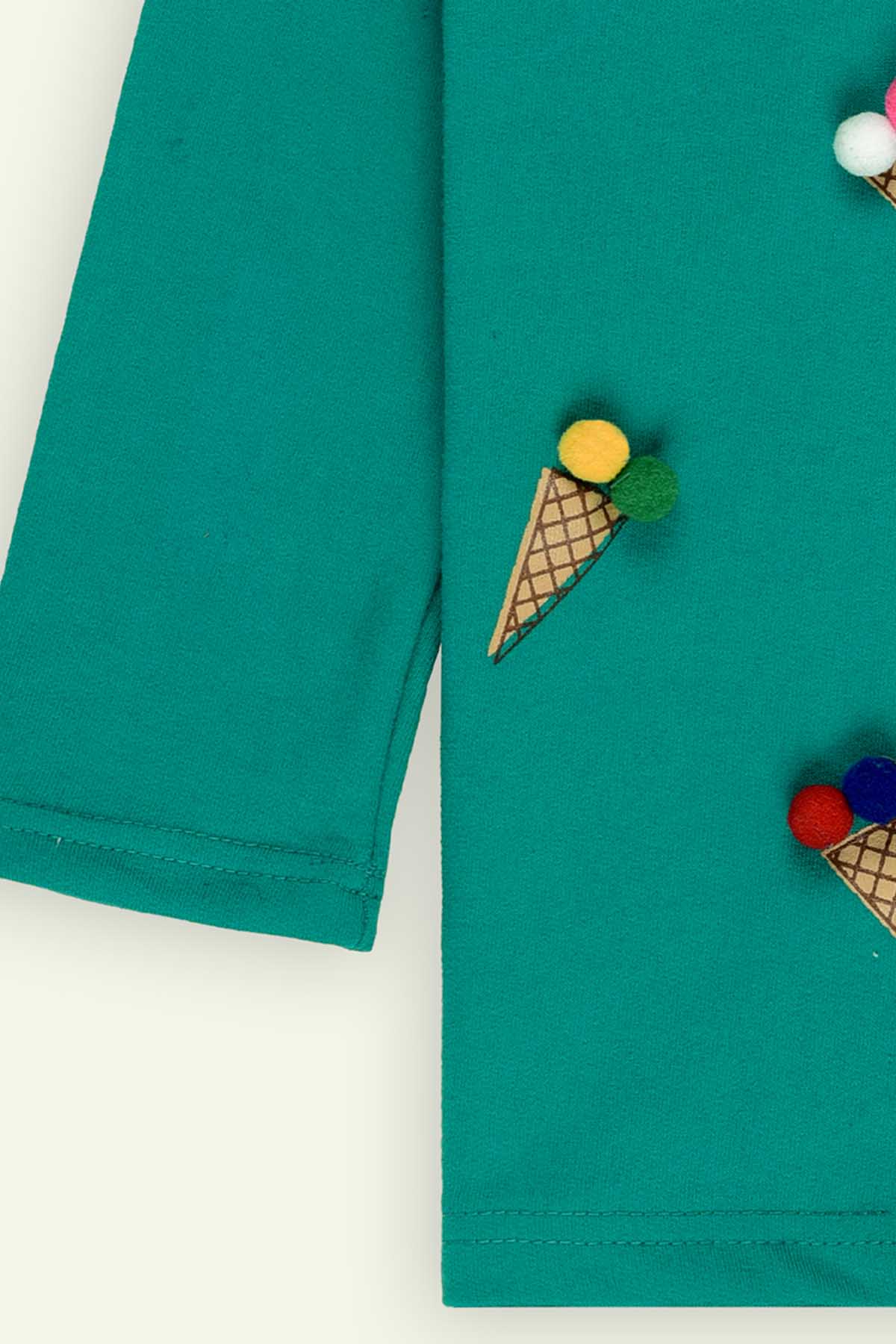 Bright, Fun, And Effortlessly Stylish¸ Our Turquoise Green Waffle Printed T-Shirt Is Crafted From Soft French Terry Fabric For All-Day Comfort And Warmth. The Adorable Pom Pom Detail Adds A Playful Pop Of Charm, Making It A Perfect Pick For Both Casual Days And Fun Outings.