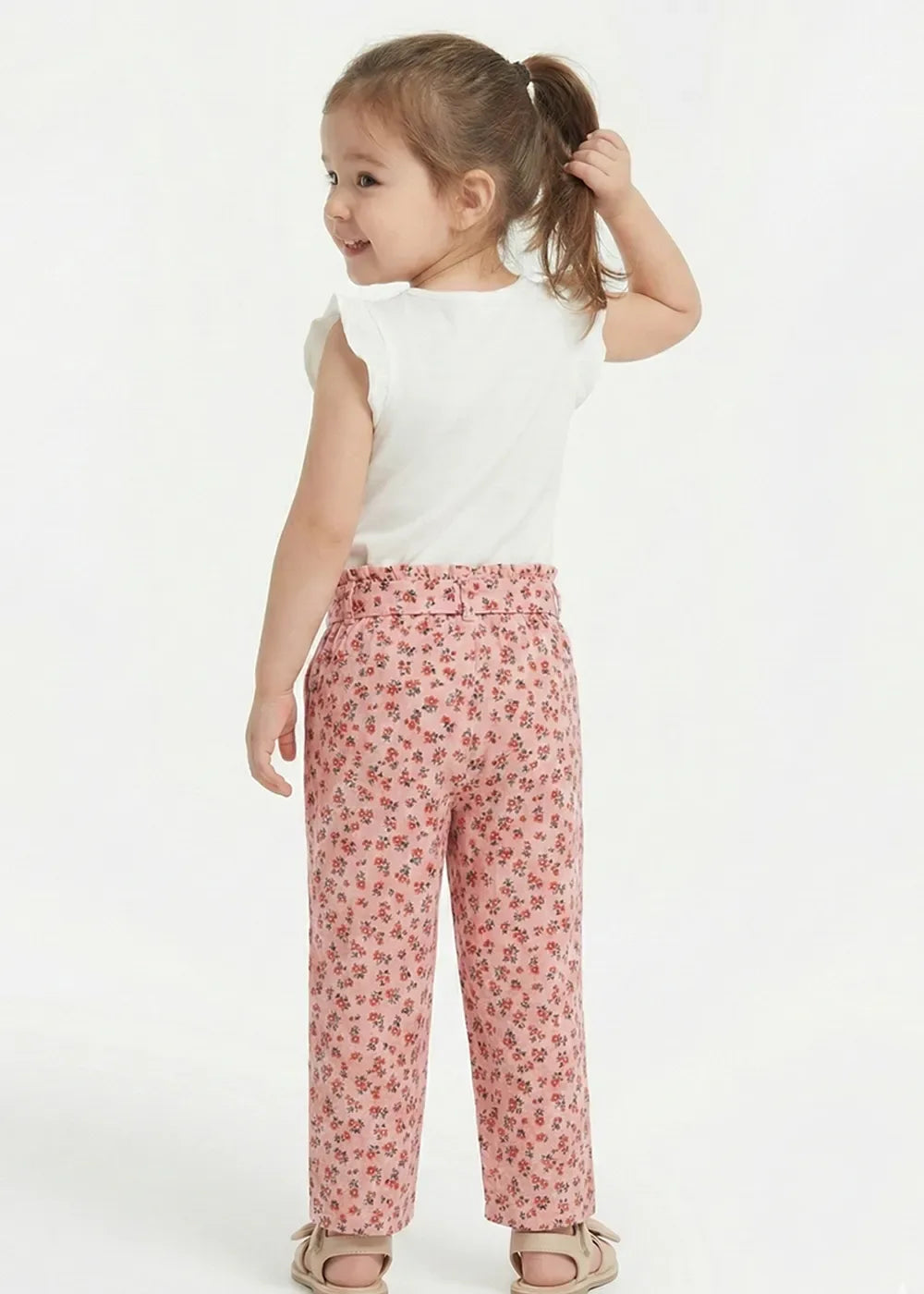 Adorable soft trousers featuring a delicate floral print and a comfortable tie-waist design. Made from lightweight, breathable fabric to keep little ones comfy all day. Perfect for playtime, outings, and everyday wear.