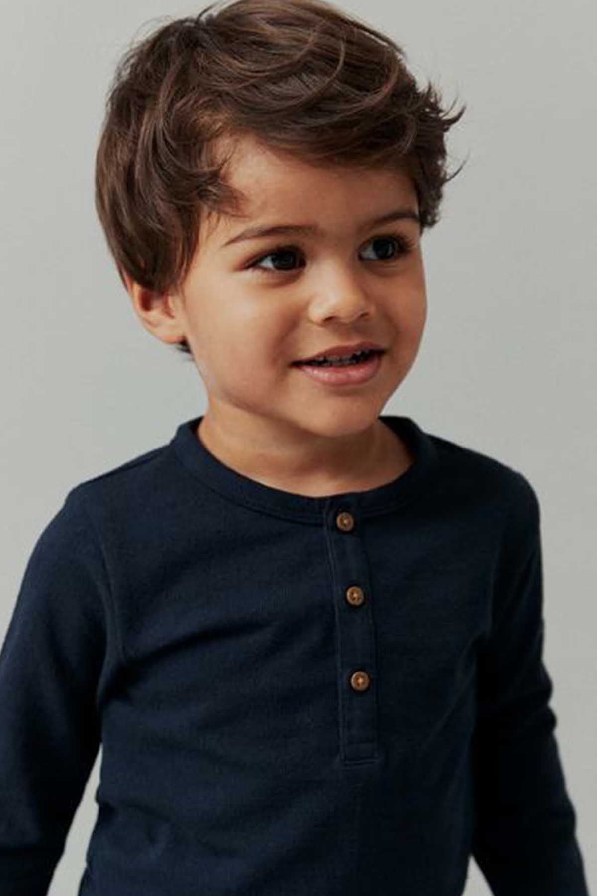 Navy Long Sleeve Henley Neck T-Shirt (3mths-7yrs)