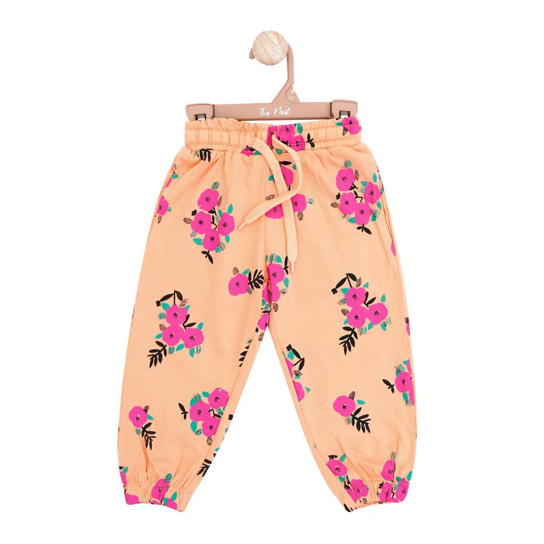 Featuring a beautiful flower bunch print on a subtle peach background, these trousers are a perfect blend of fashion and comfort.