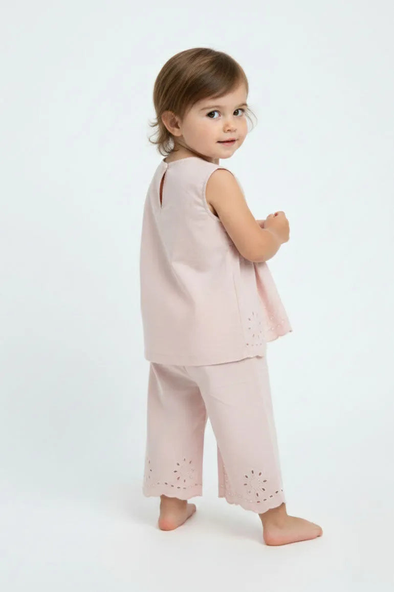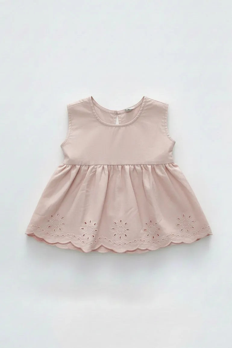 Embroidered Scallop Hem Dress For Girls - Blush Pink