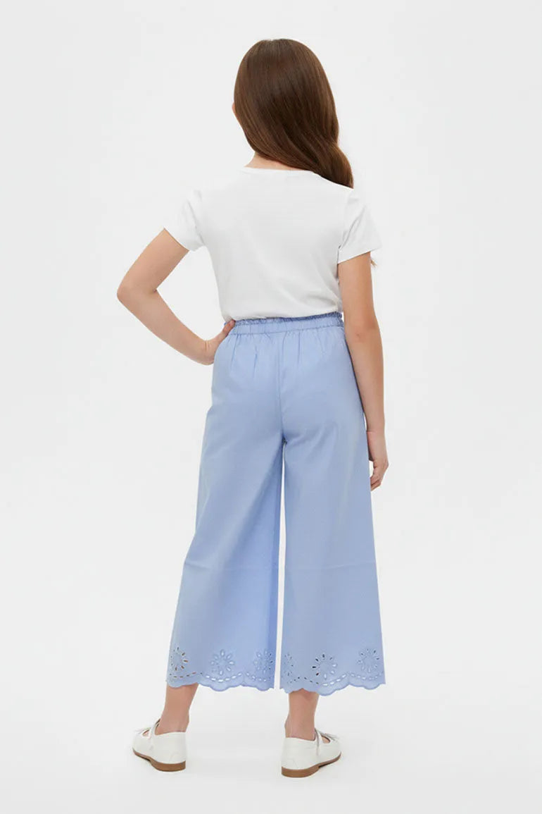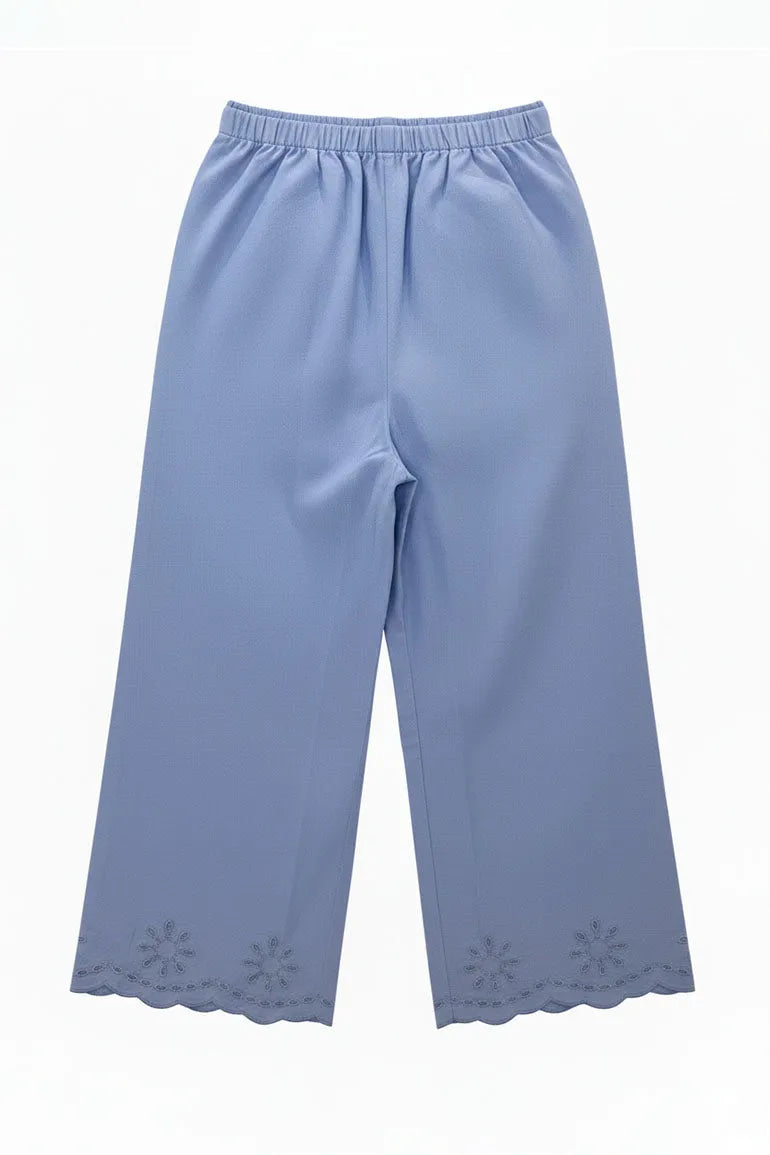 Embroidered Scallop Hem Pants For Girl - Sky Blue