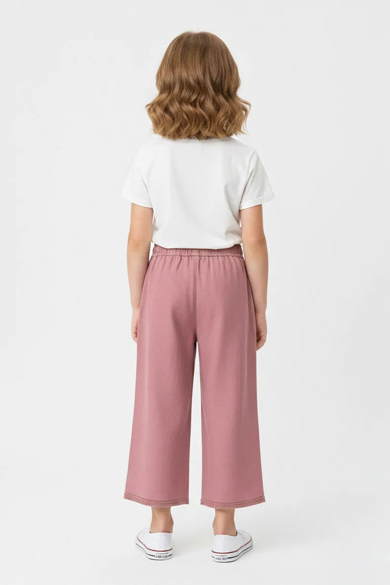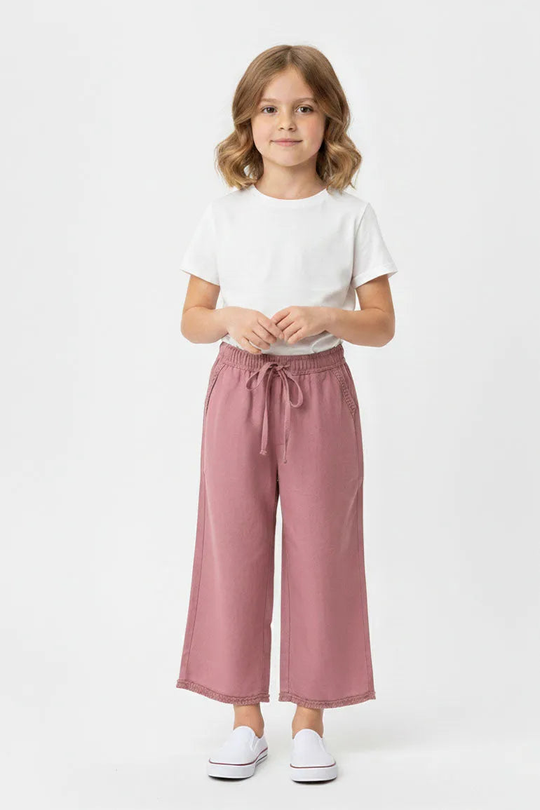 Lace Trim Drawstring Pants For Girl - Ash Rose