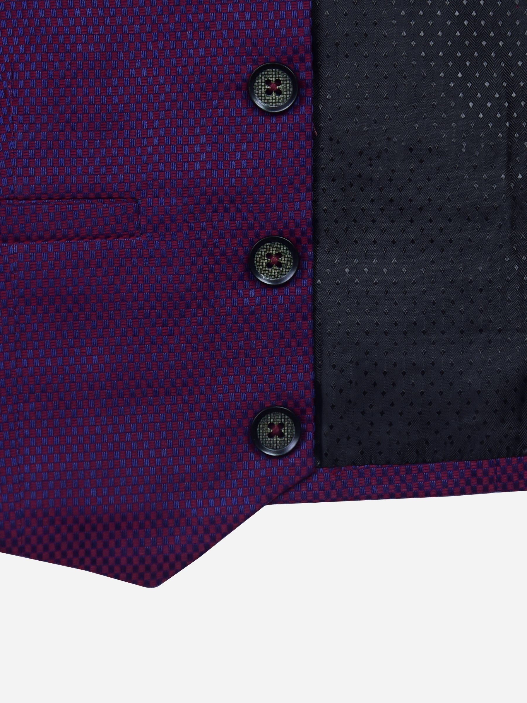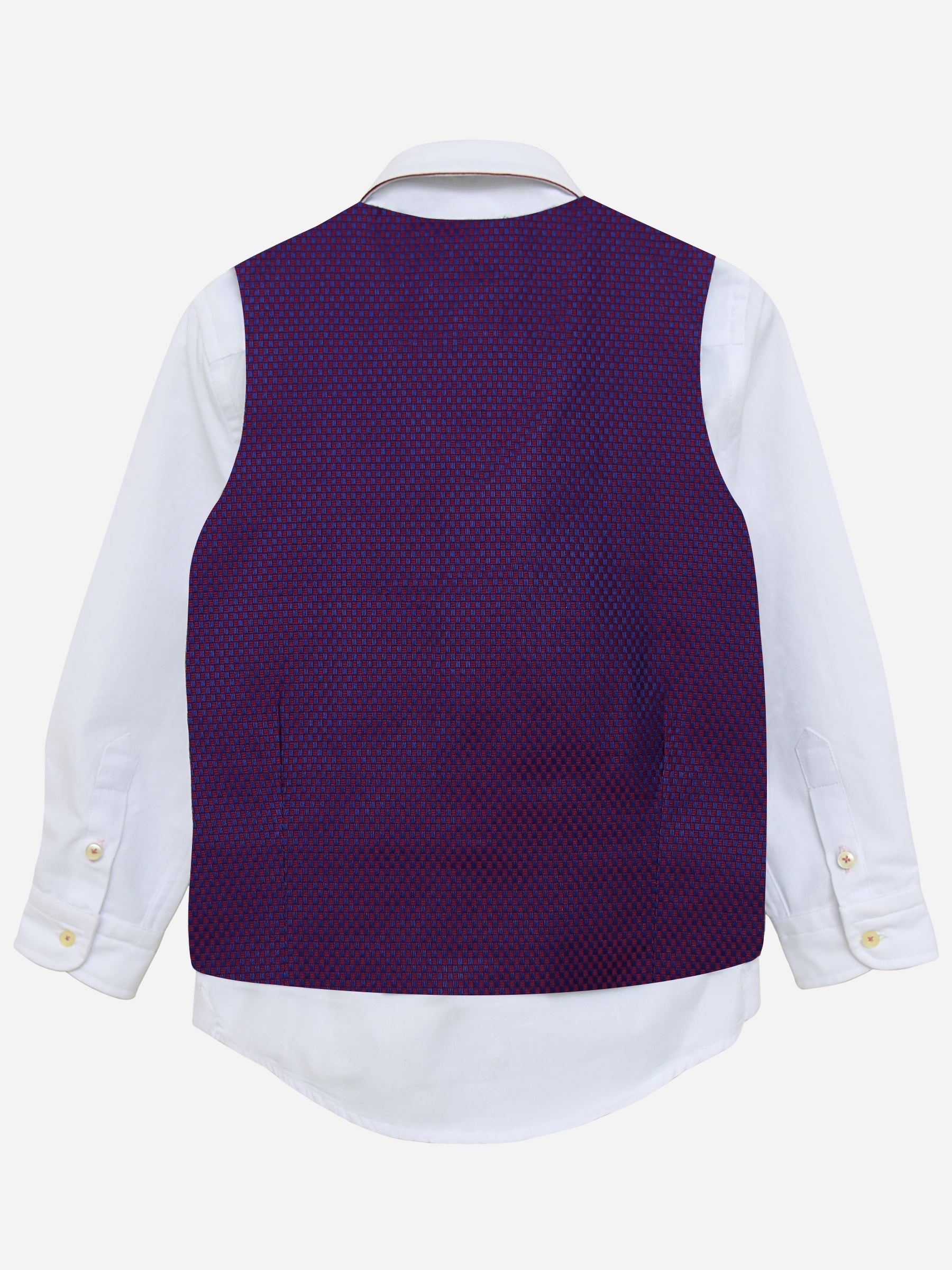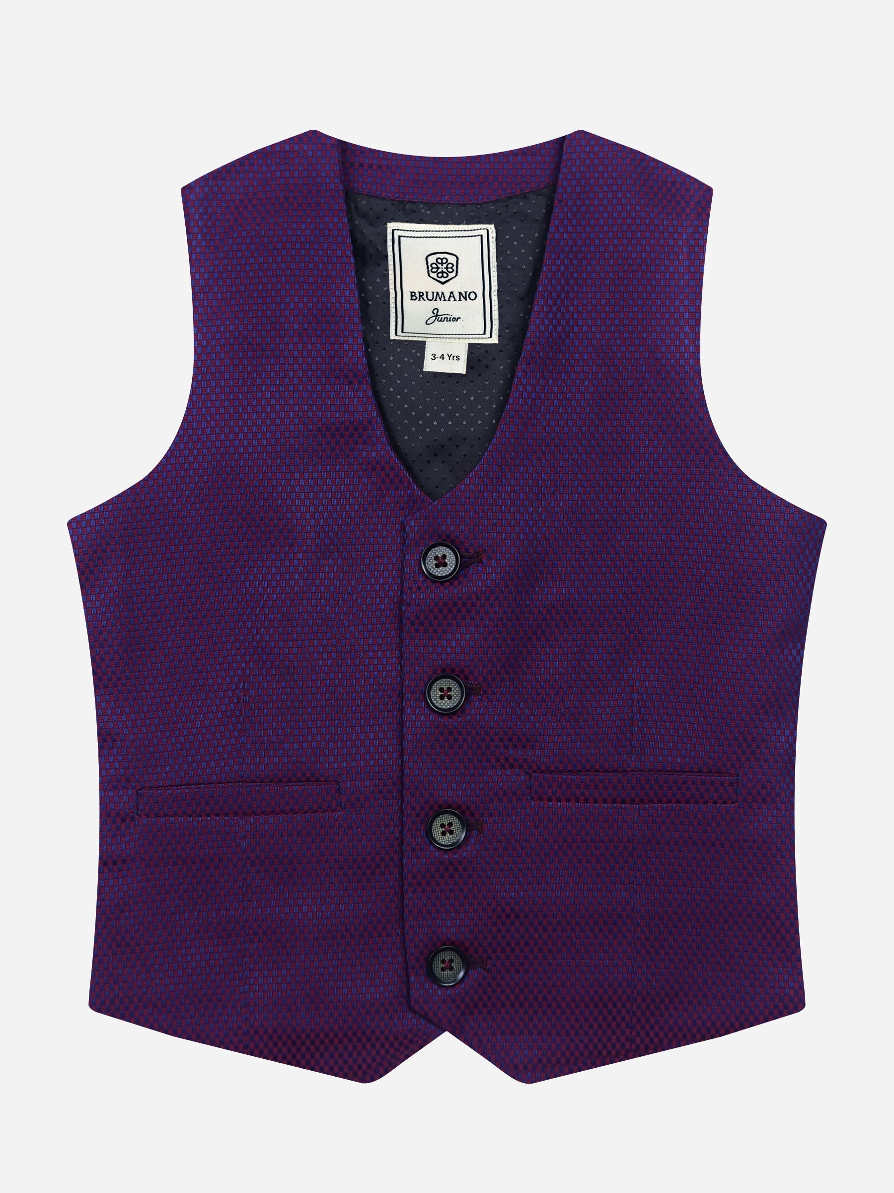 This kids magenta patterned suit vest with bow is perfect to dress up your little one for any special occasion. Geometrical design and smart bow will make them stand out from the crowd