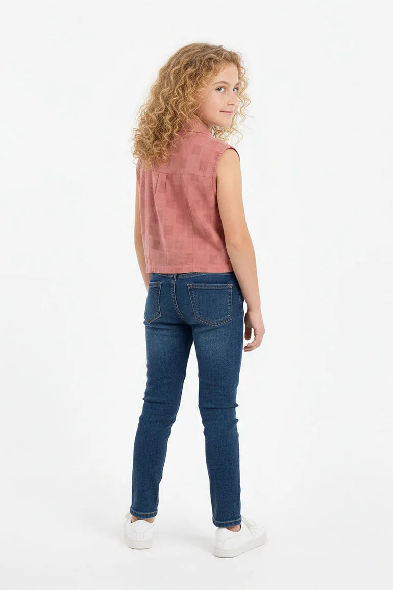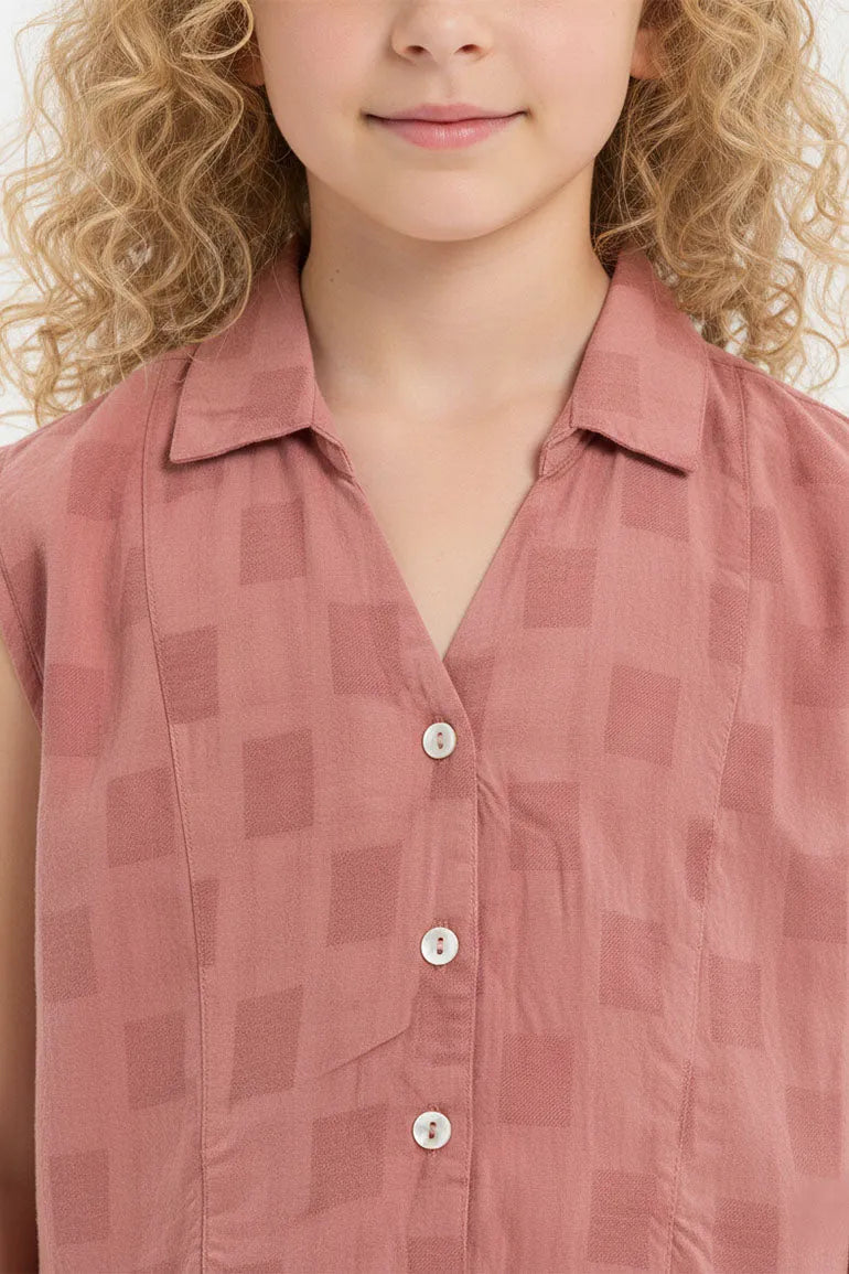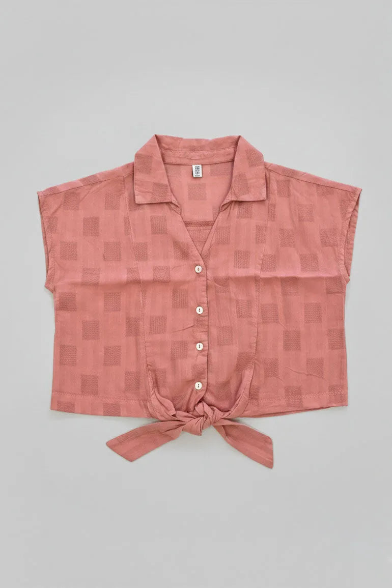 Tie Front Button Down Top For Girl - Dusty Pink