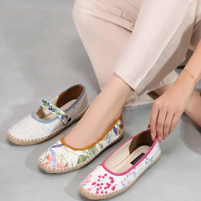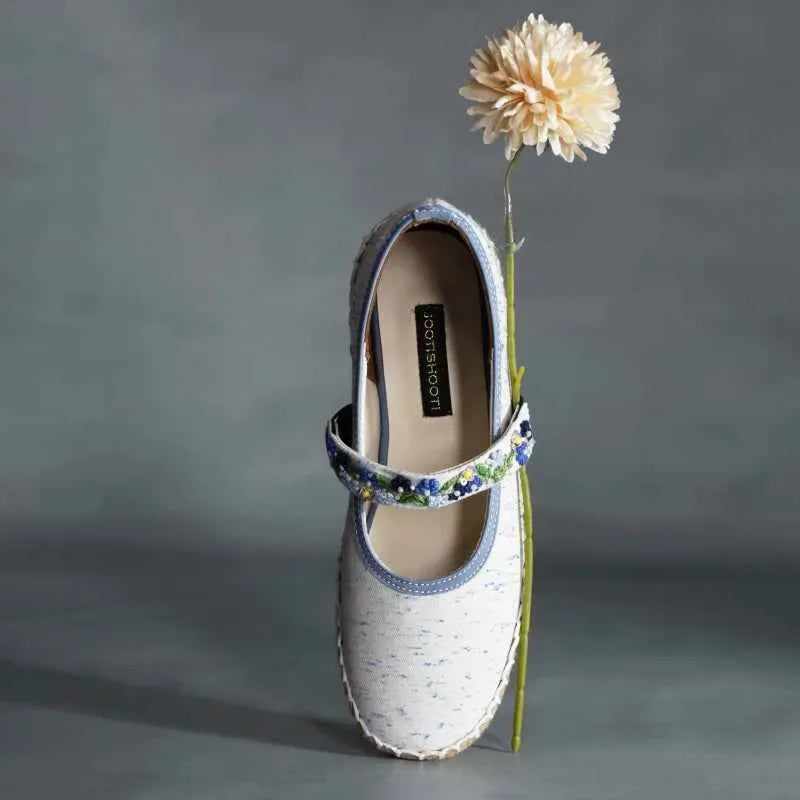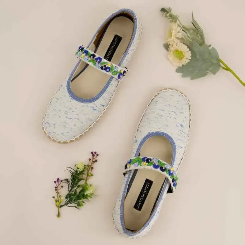 Dive into carefree days with these charming espadrilles inspired loafers that echo the vivid beauty of azure coastal waters. With playful splashes of oceanic blue and a decorative floral strap, they’re an ideal choice for sunny afternoons or leisurely seaside walks. Pair them with sundresses, denim shorts, or airy culottes for endless summer style.
