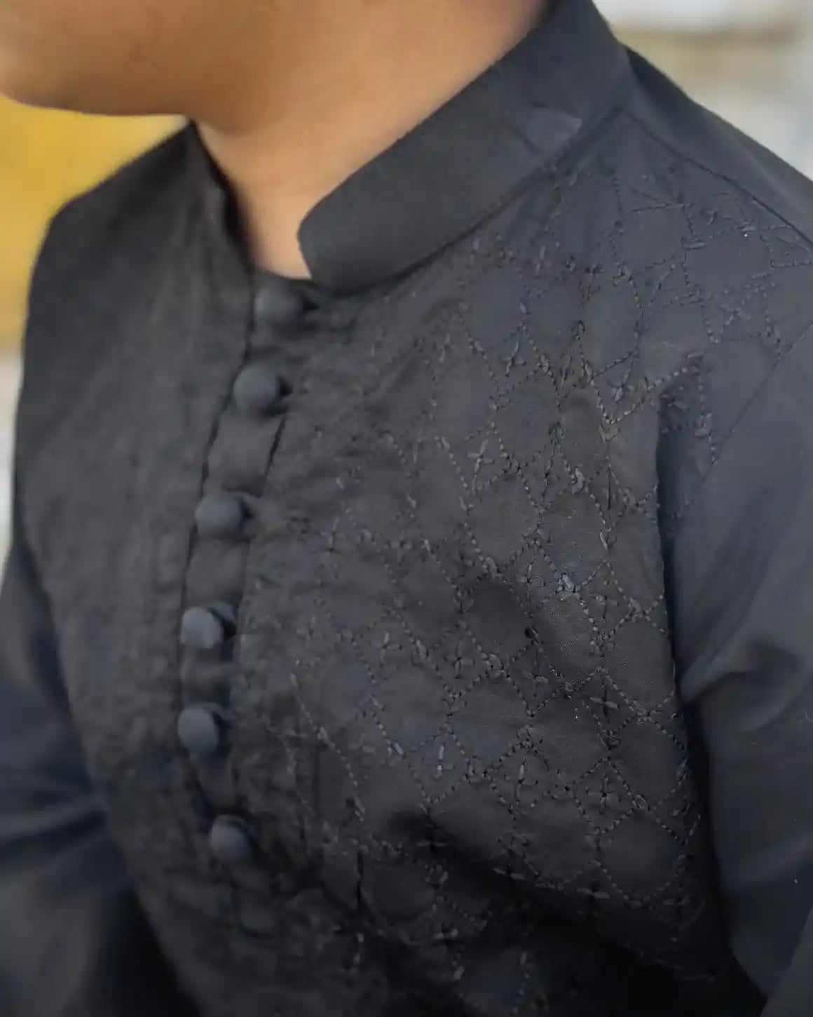 Black Cotton Trouser Kameez Embroidered 2-Piece Set - Kids