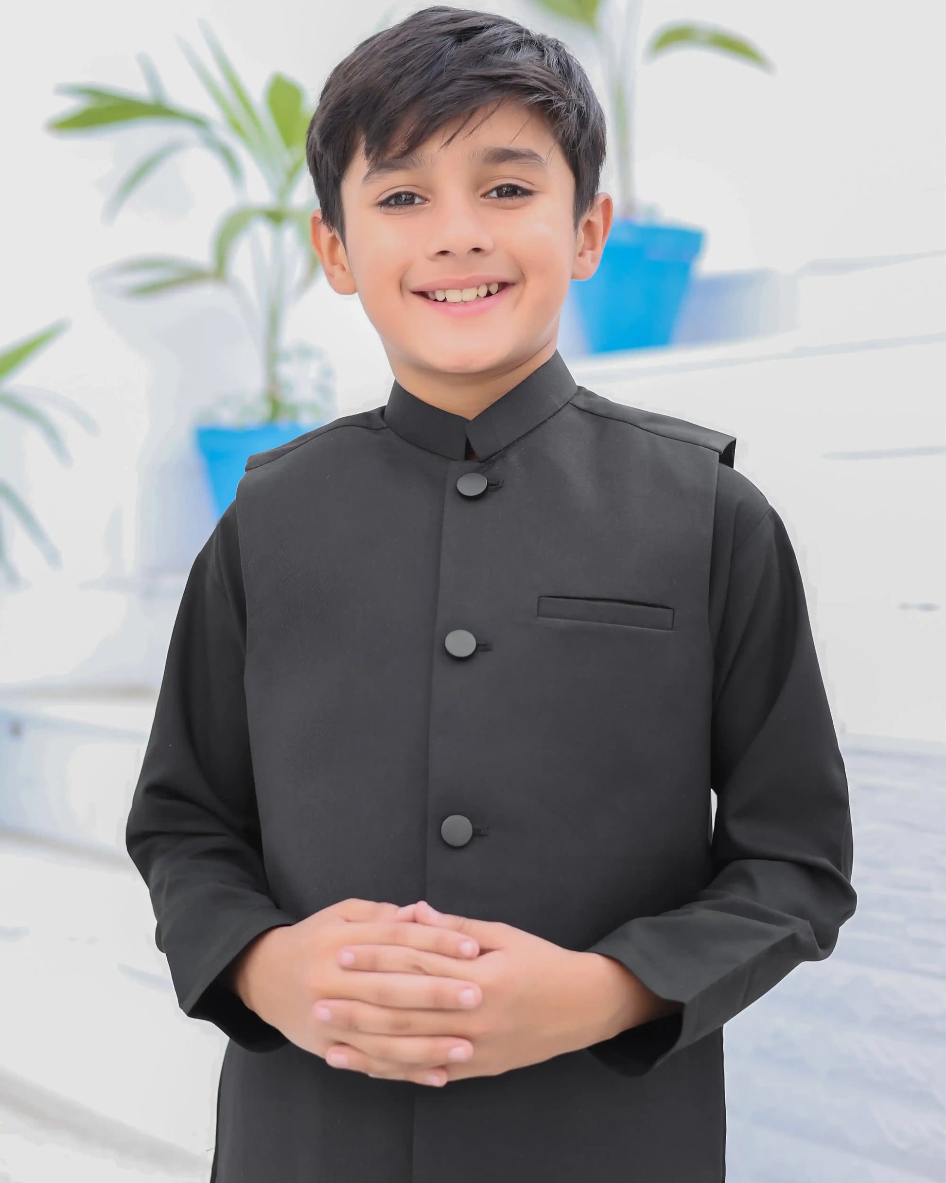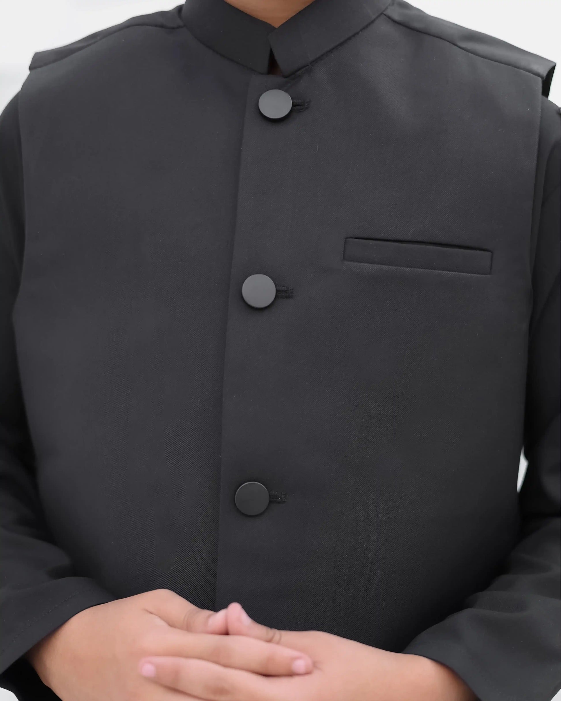 Black Kurta Trouser with Suiting Waistcoat - Kids