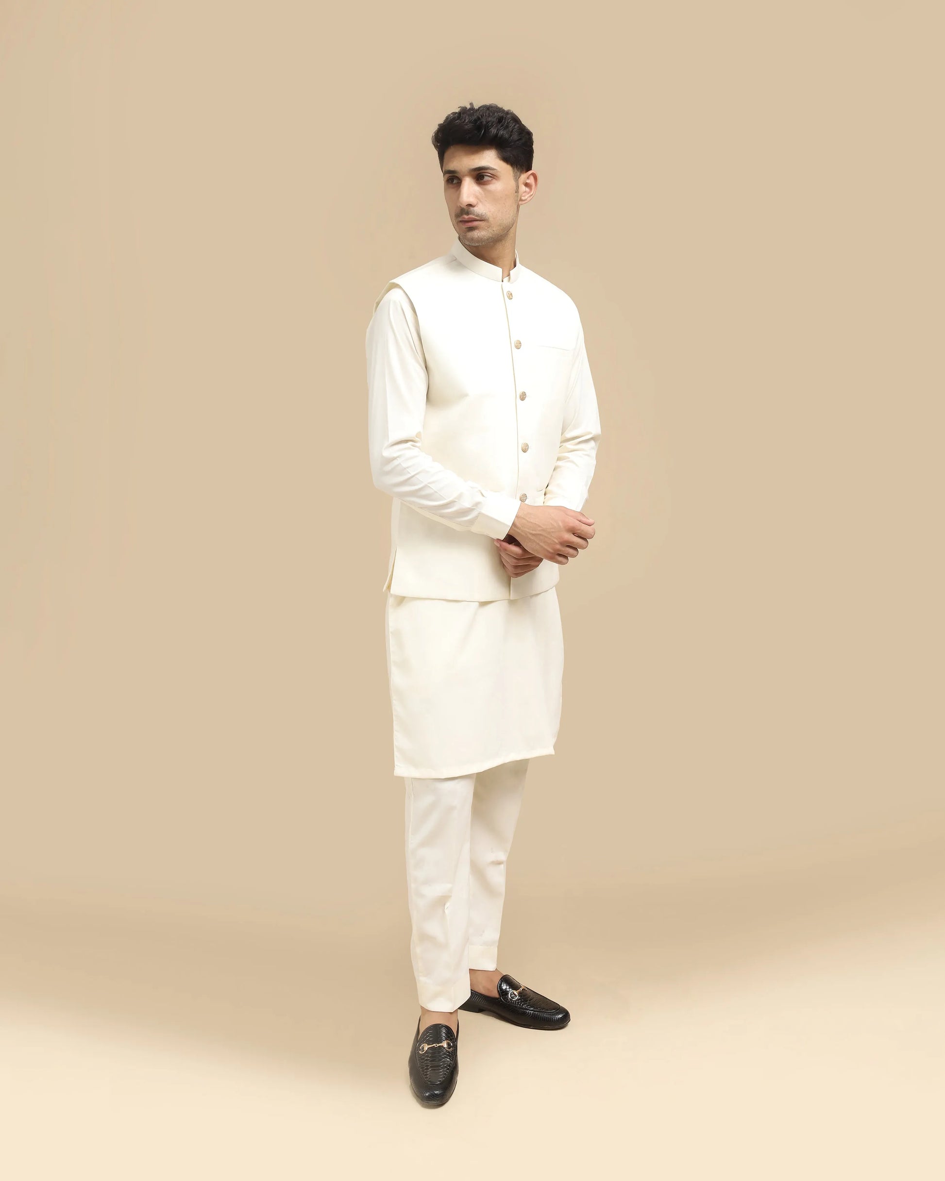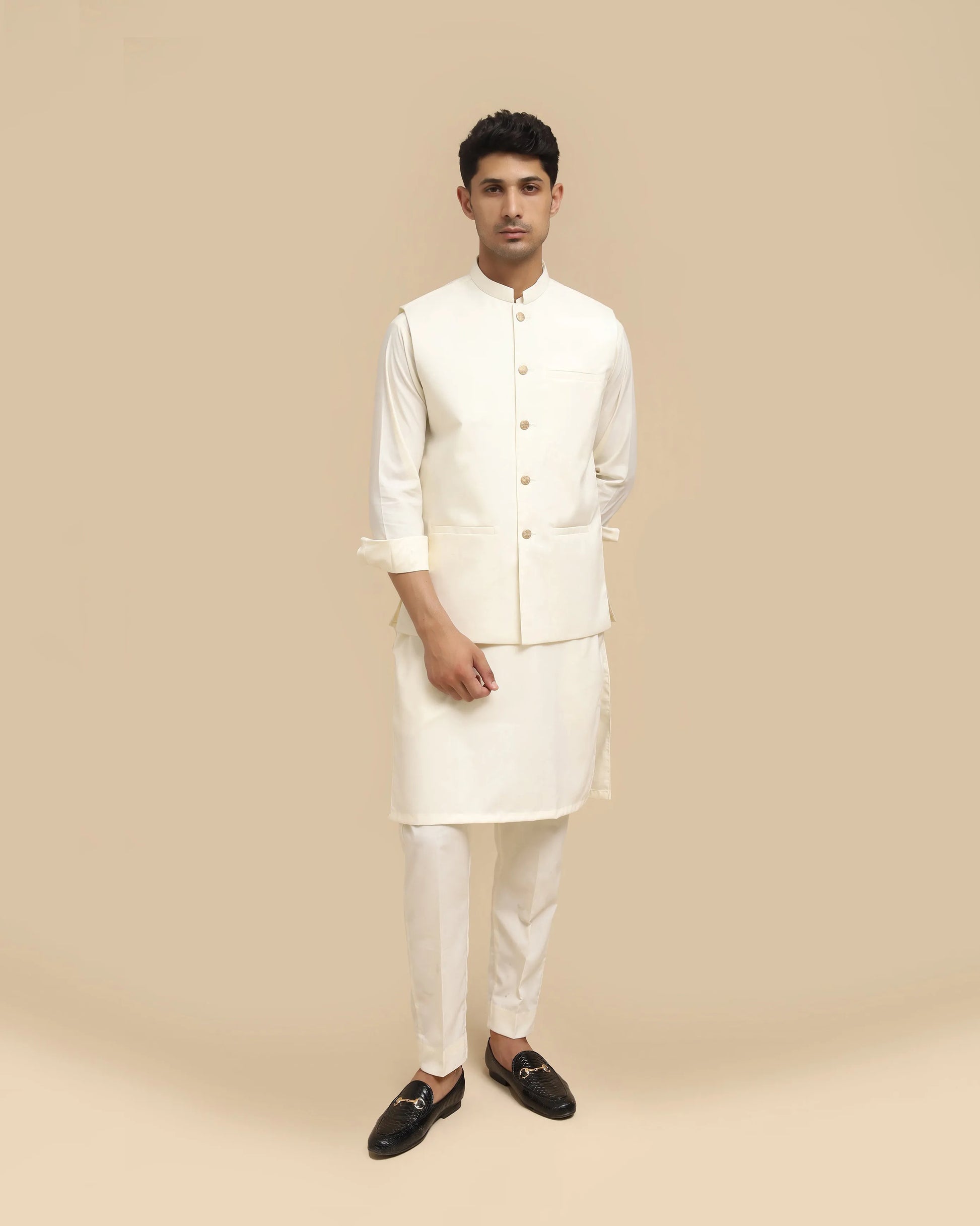 Enhance Your Style With The Bosky Kurta Trouser And Blended Waistcoat Set For Men—A Timeless Blend Of Tradition And Modern Elegance. Featuring A Straight Cut Waistcoat, This Ensemble Is Perfect For Formal Events And Cultural Occasions.