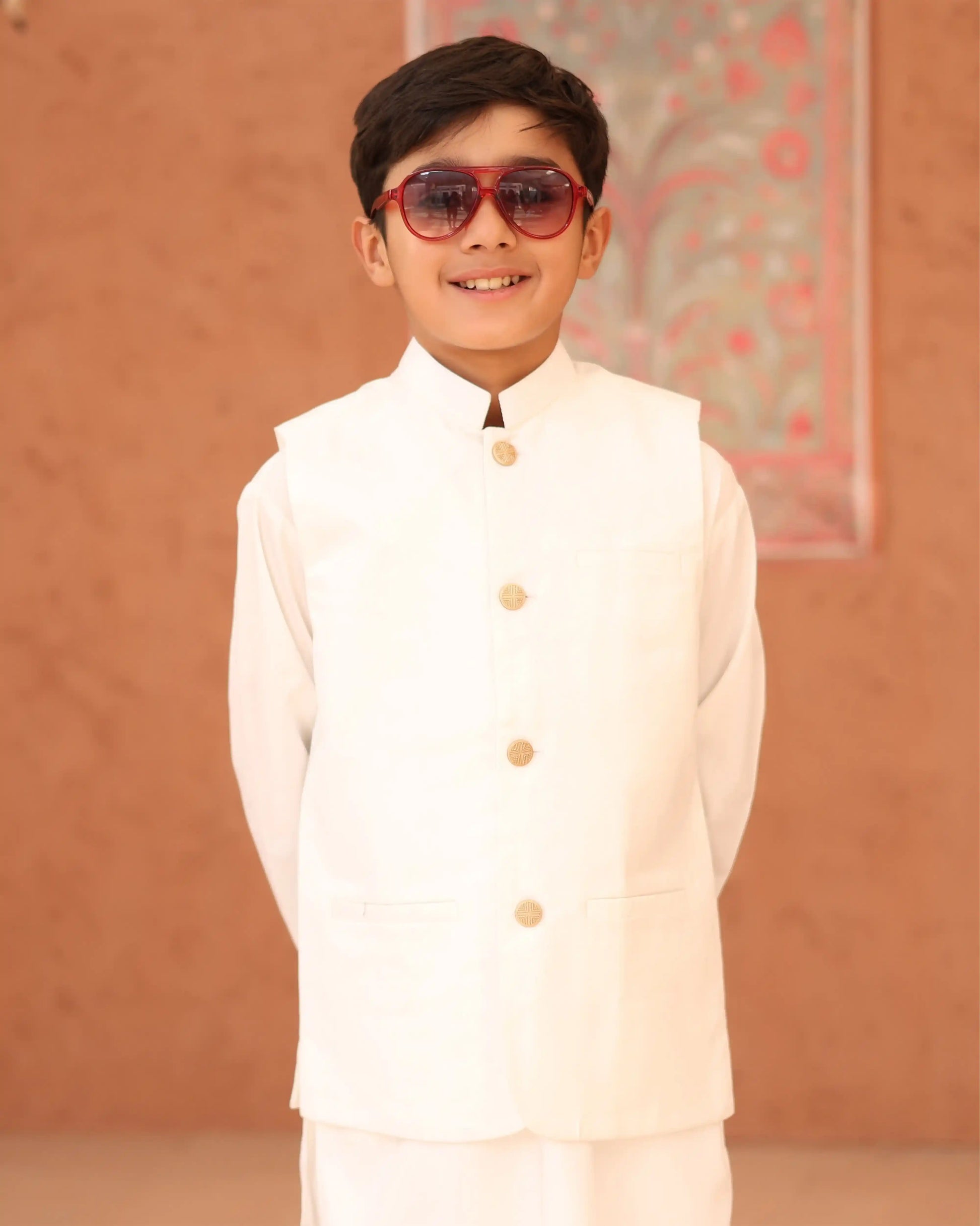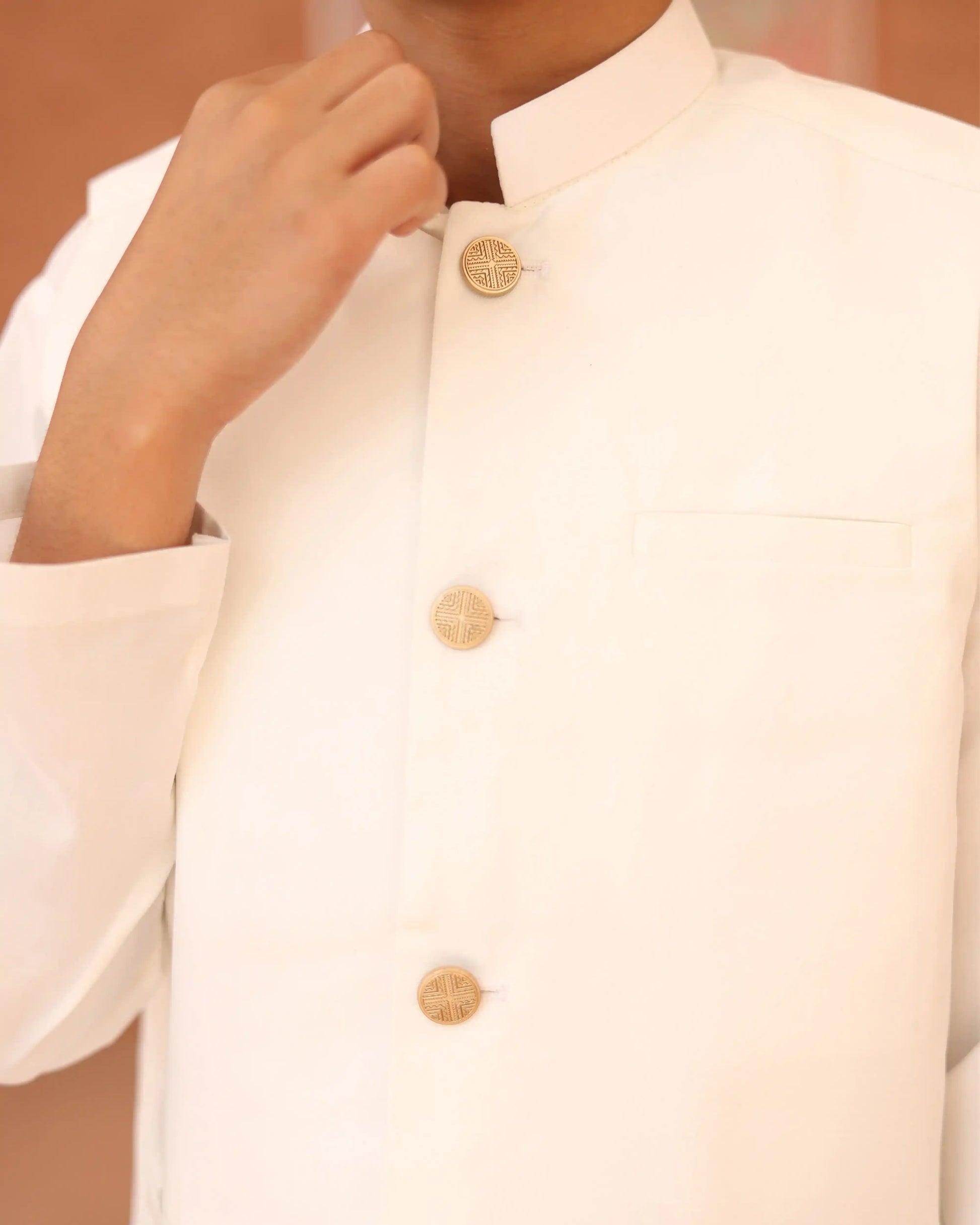 Off White Kurta Trouser with Suiting Waistcoat - Kids
