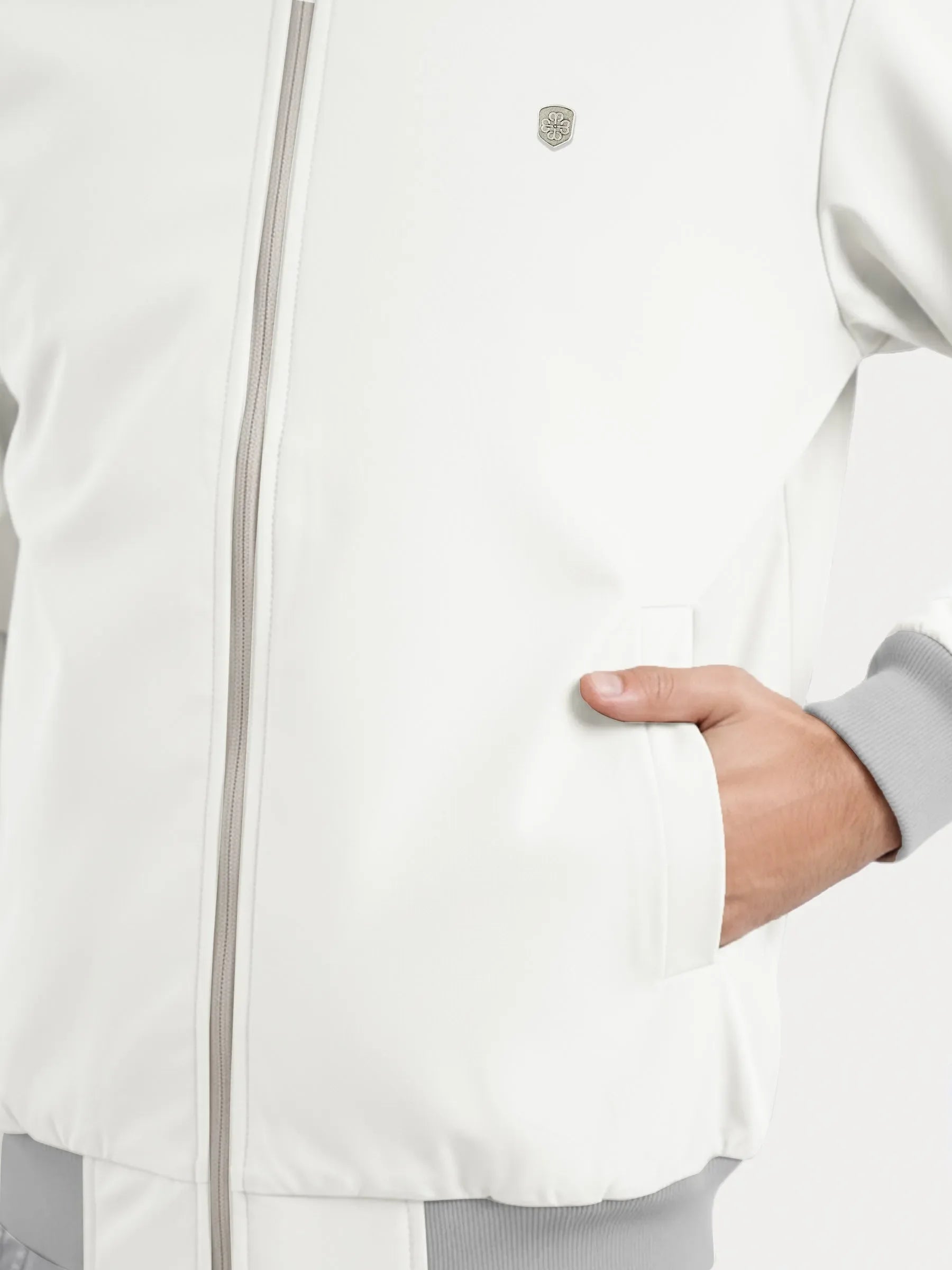 Beige bomber jacket combines classic style with modern functionality. Made from high-quality material, it features a sleek, tailored fit with ribbed cuffs, collar, and hem for a comfortable, secure feel. The jacket is lightweight yet warm, perfect for layering in cooler weather. With multiple pockets and durable zippers, it’s both practical and stylish, making it a versatile addition to any wardrobe.