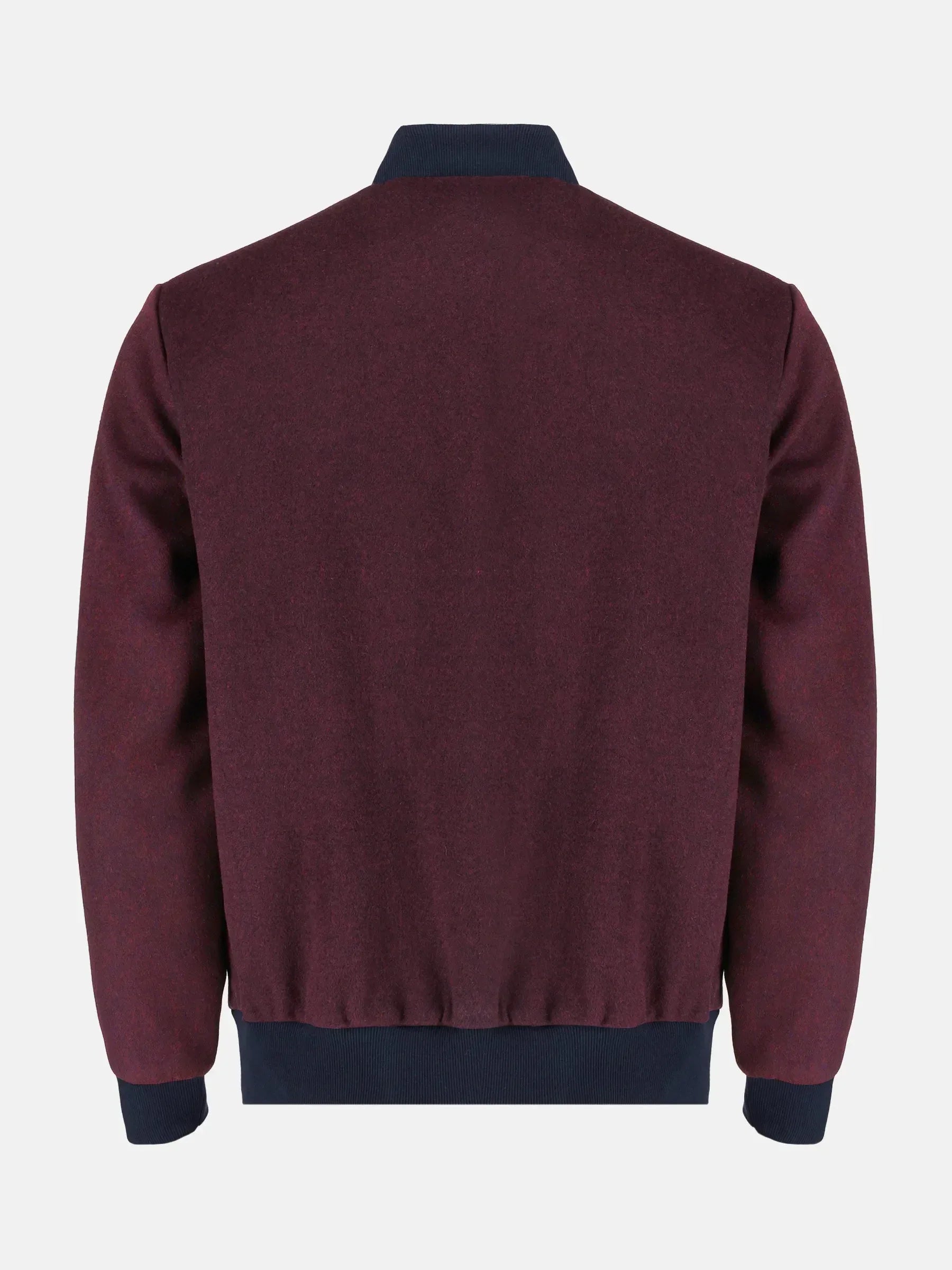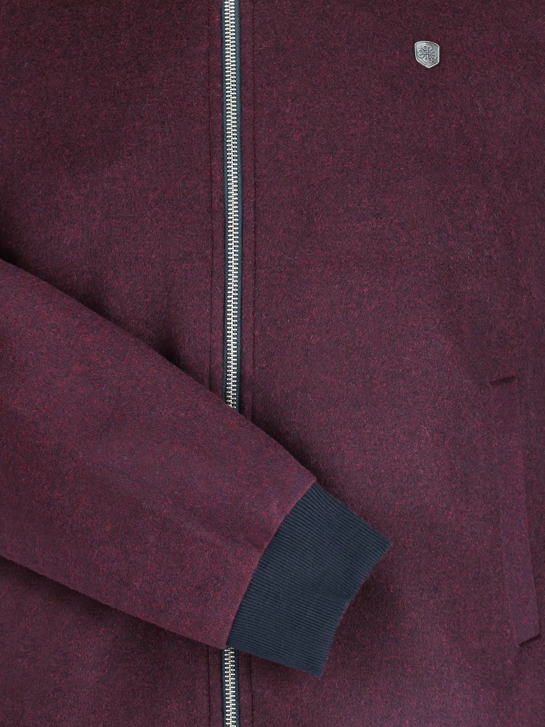 This men’s burgundy wool blended bomber delivers rich color, warm comfort, and a clean zip-front look. Ribbed collar, cuffs, and hem create a sharp fit that holds its shape. It layers easily with denim or a knit for effortless day-to-night style.
