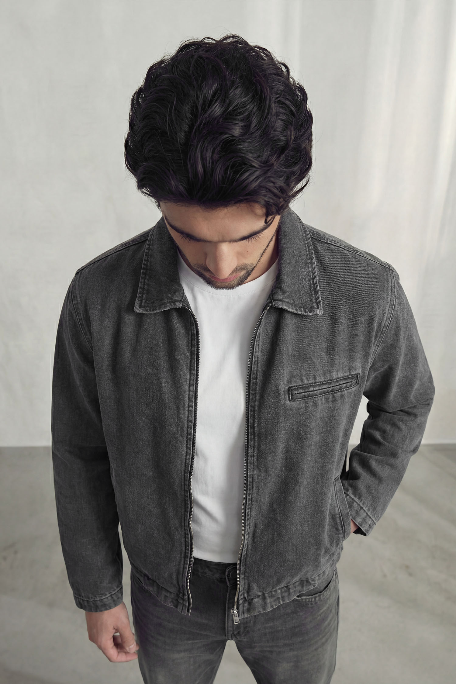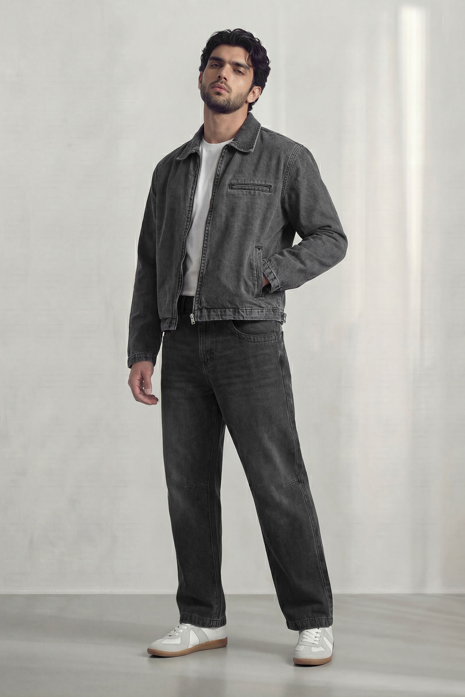 Grey Mid Wash Relaxed Fit Denim Jacket