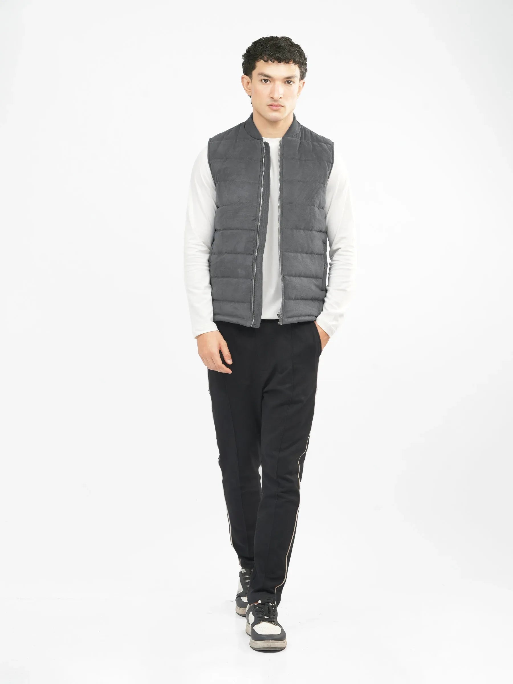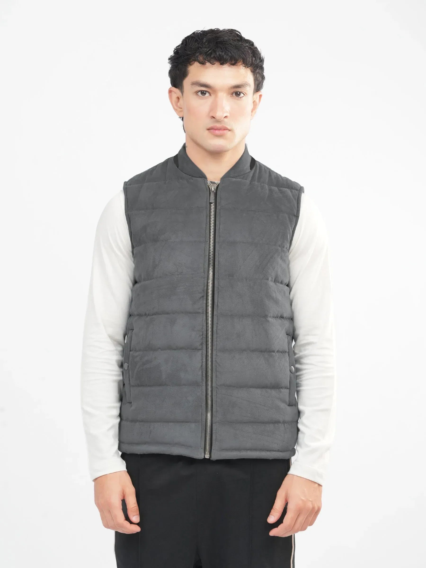 A refined sleeveless layering piece with an old-money look. Crafted in soft-touch faux suede with a clean, structured fit, it adds instant depth over shirts or shalwar kameez. Finished in a rich grey tone for effortless smart-casual styling. This quilted sleeveless gilet is a must-have this season