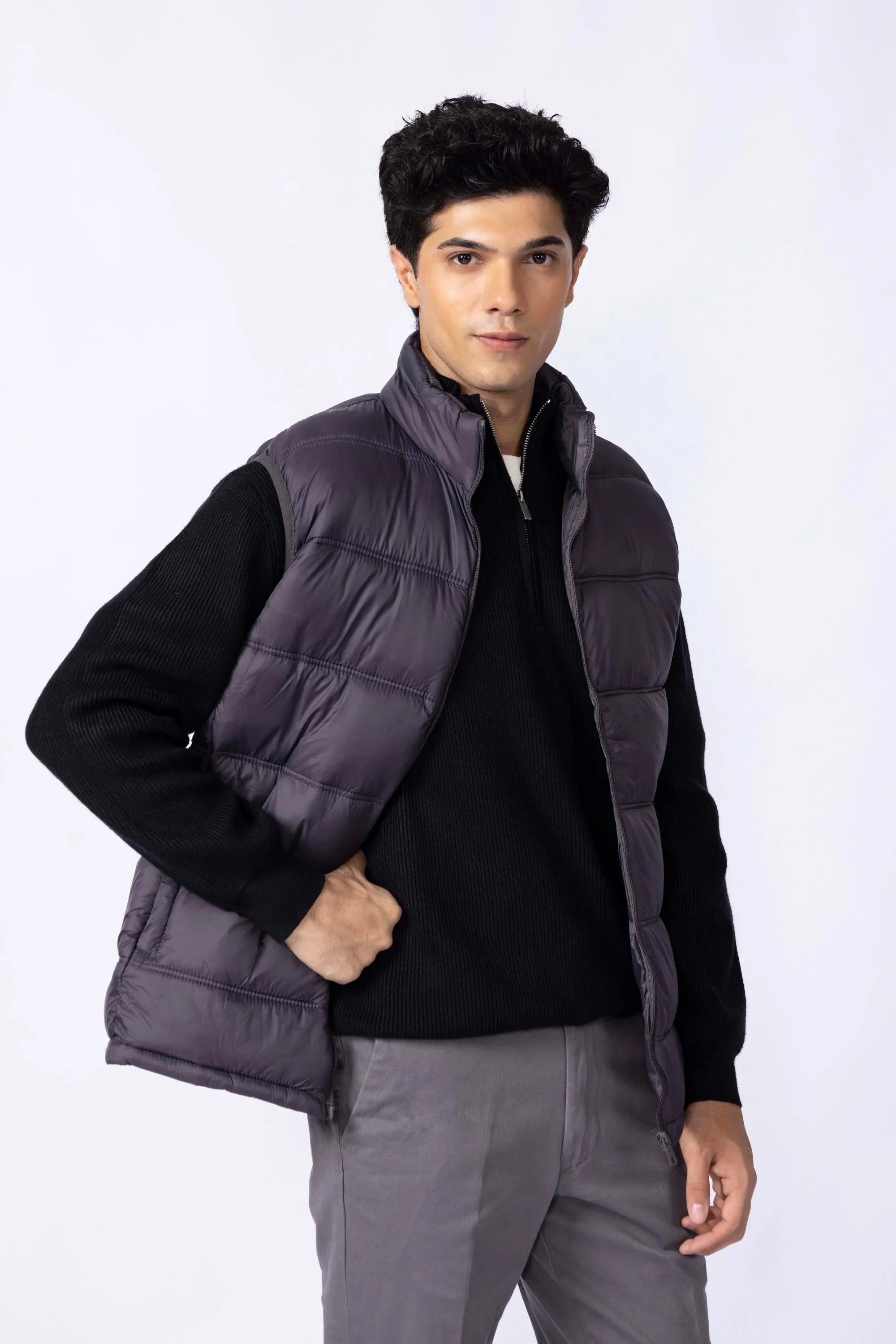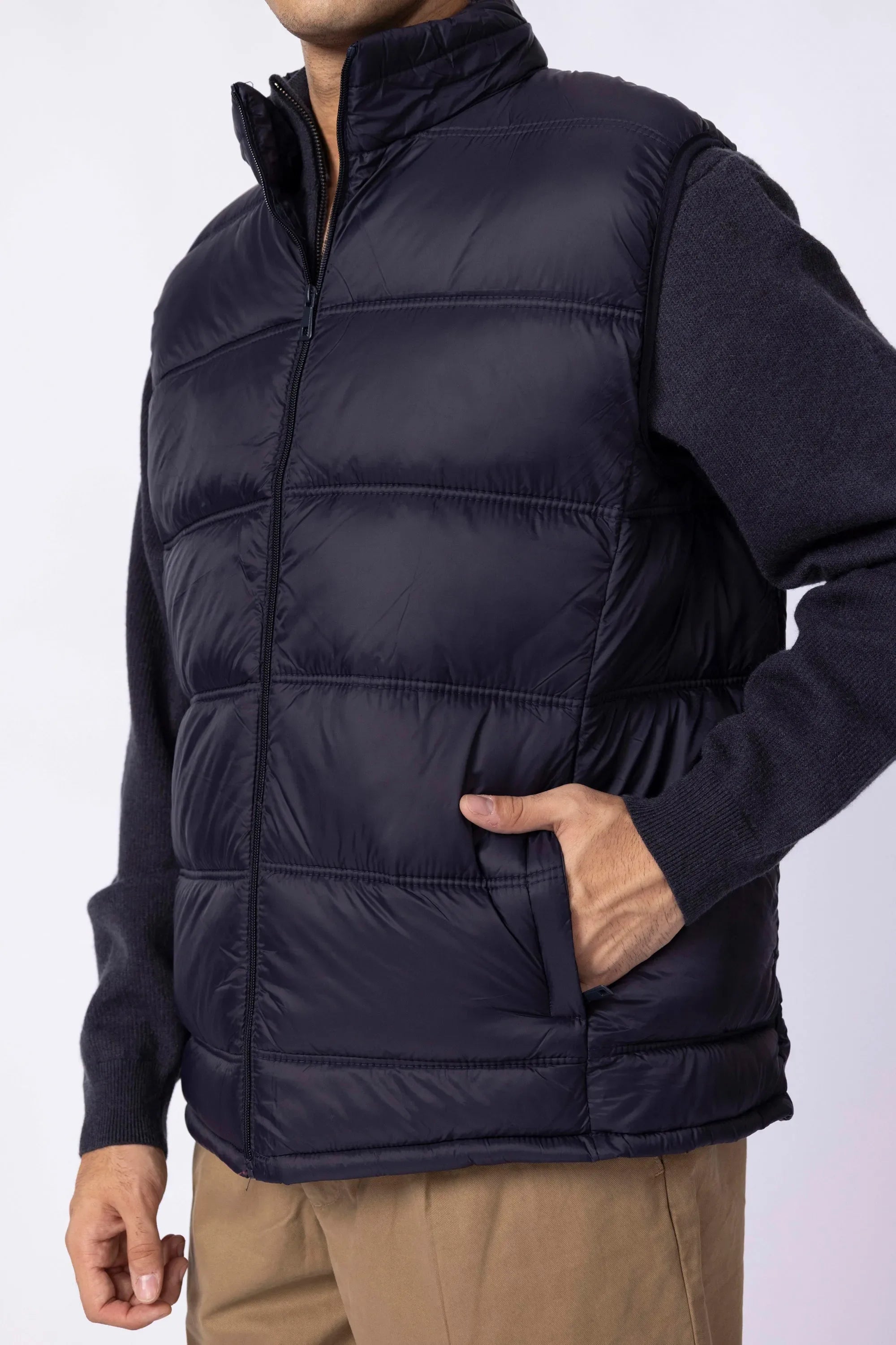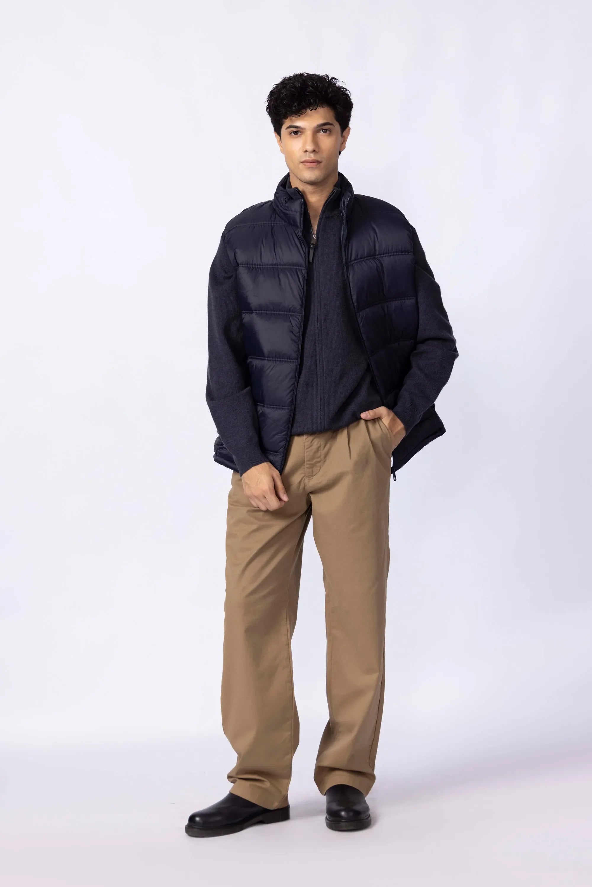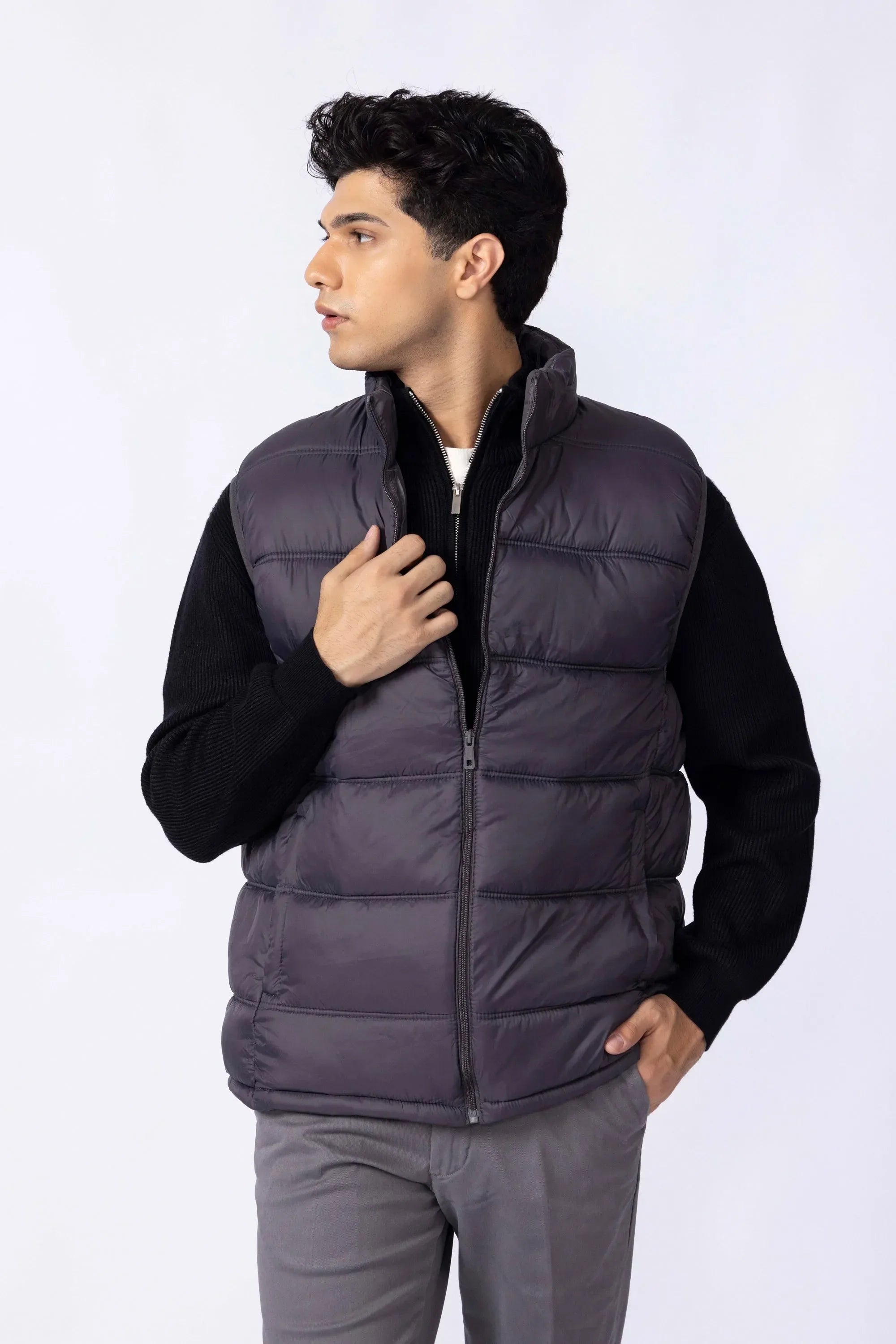 Your cold-weather essential that strikes the perfect balance between insulation and comfort. with a clean-cut silhouette and light padding for warmth, it layers effortlessly without the bulk. The high collar adds both structure and snugness, while the durable shell fends off wind and wear. Functional pocket keep your essential close, and the polished matte finish means it works just as well with joggers as with jeans or tailored pants.