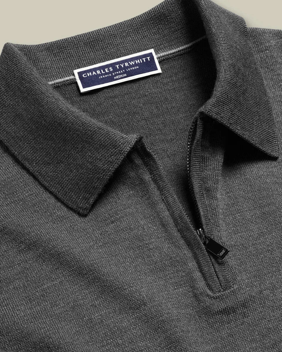 This midweight polo zip-neck sweater is crafted from 100% Woolmark-certified Merino wool, known for its natural breathability and temperature regulation. It's garment washed for a softer feel and finished with a concealed zip for a clean look, along with a subtle contrast trim on the back of the neck. The ribbed hem and cuffs keep the fit neat, while the traditional polo silhouette offers the versatility to layer it or wear alone.