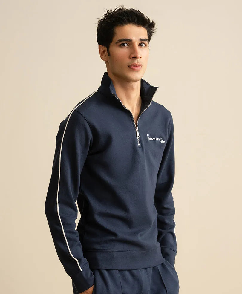 Navy Resort Mock Zipper