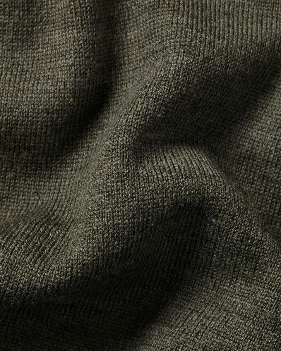 Olive Green Pure Merino Zip Polo Neck Jumper