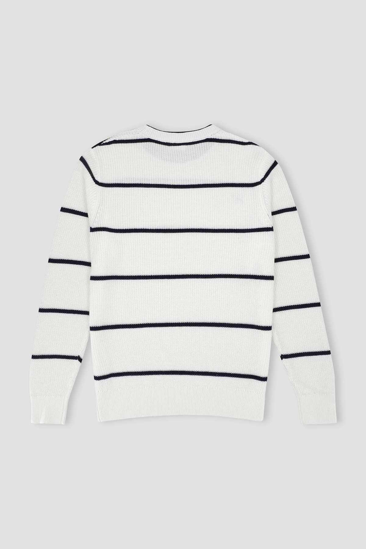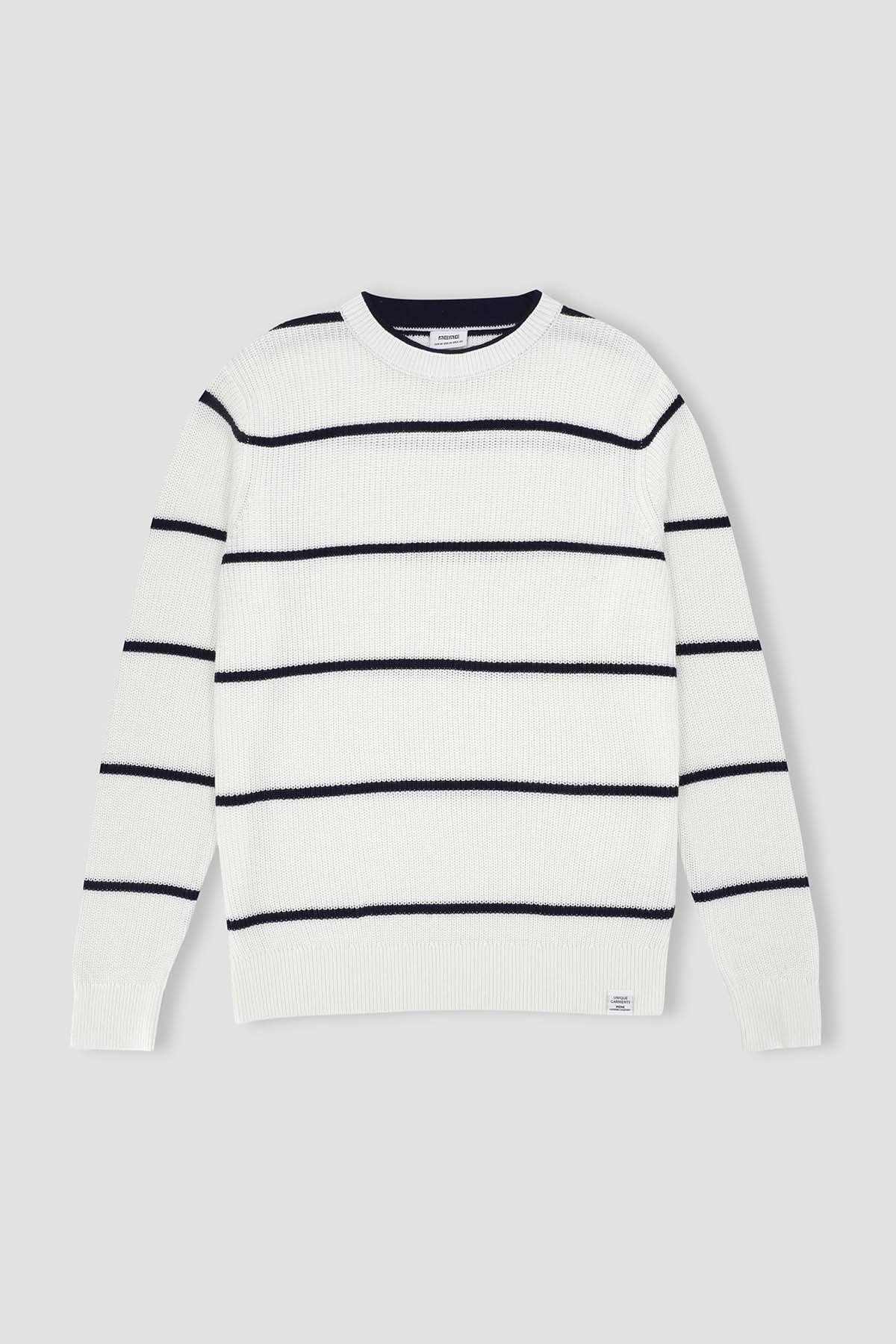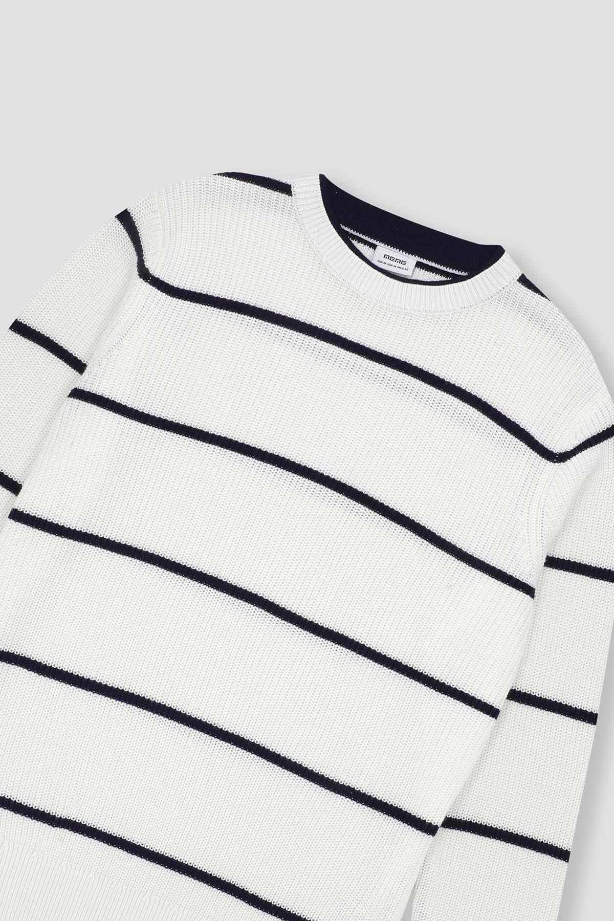 Cozy Pullover Striped Sweater With Crew Neckline. Featuring Long Sleeves.