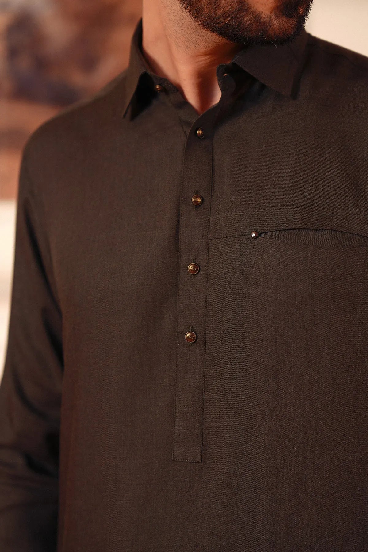 Yarn-Dyed Kameez Shalwar with Metal Pin Detailing