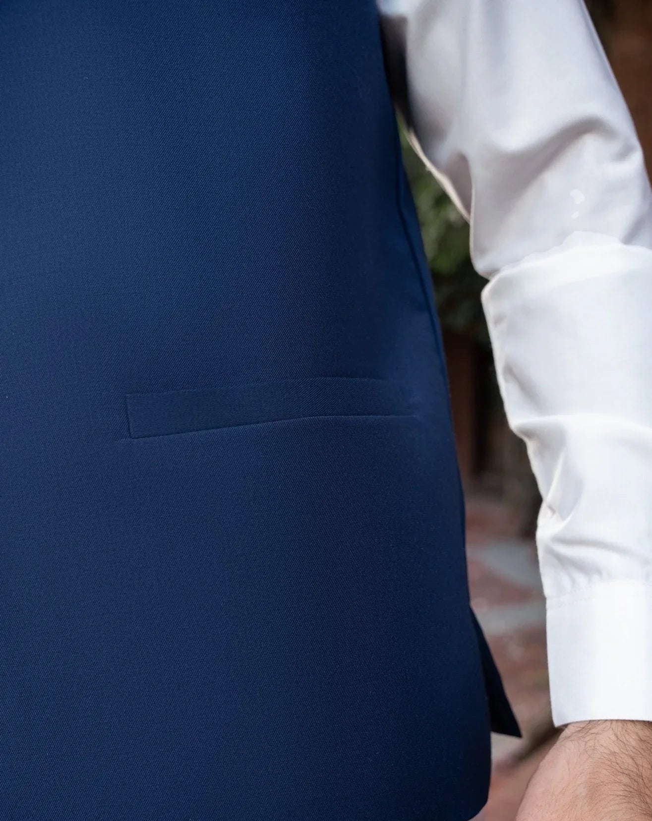 Navy Blue Suiting Waistcoat - Round Cut - Men