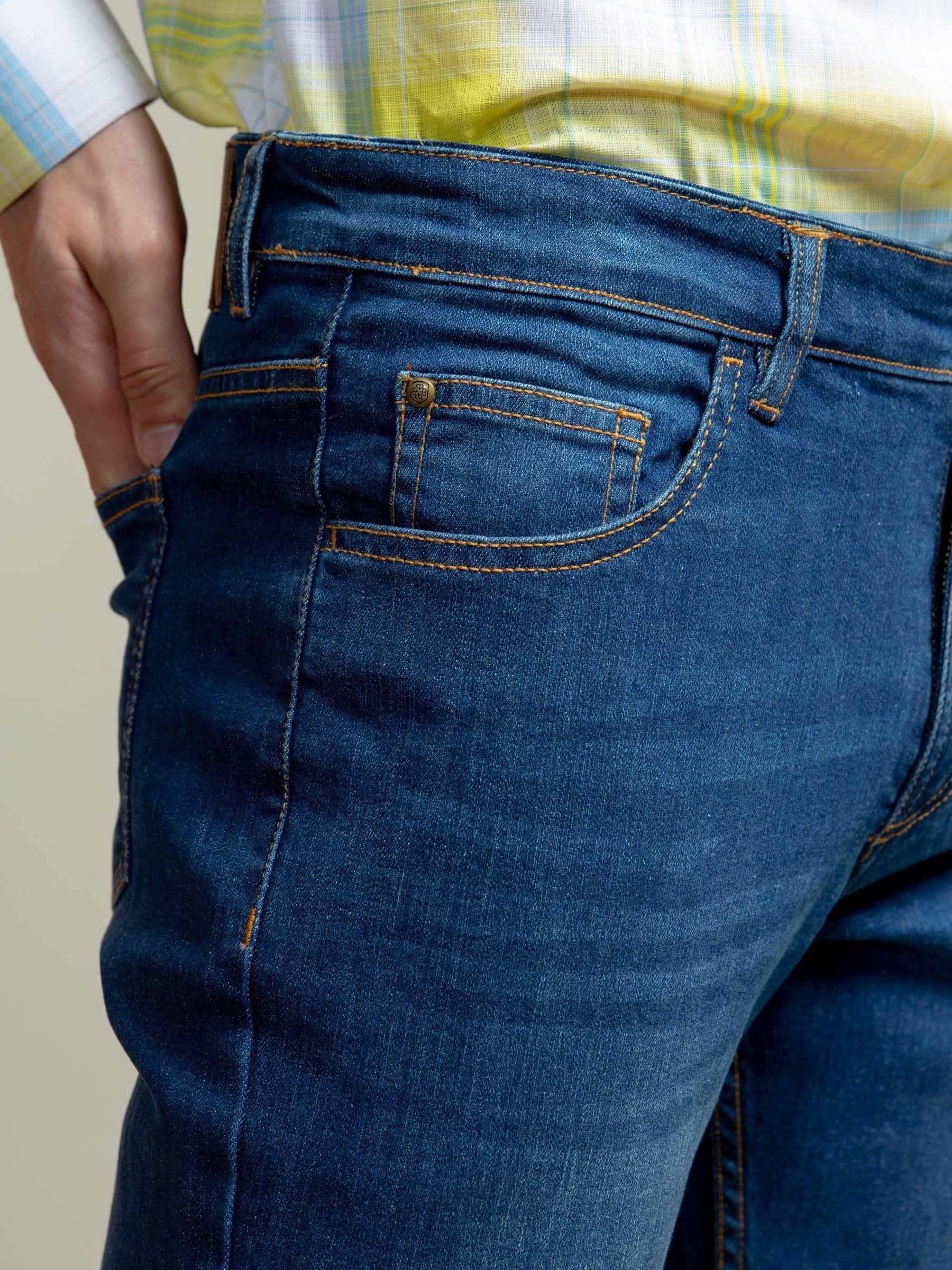 Blue Casual Slim Fit Jeans With Orange Detailing