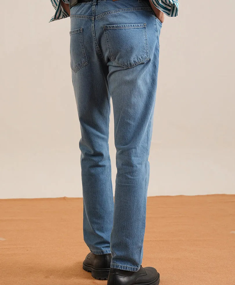 Mid Blue Regular Straight Fit Jeans