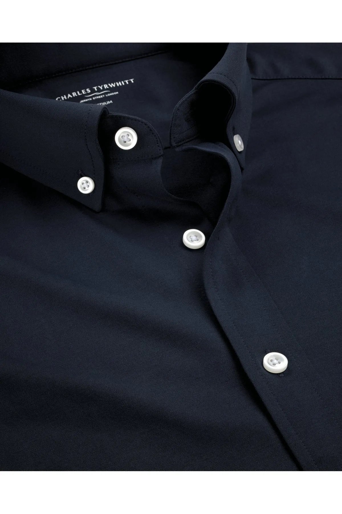 Navy Four-Way Stretch Button Down Jersey Shirt
