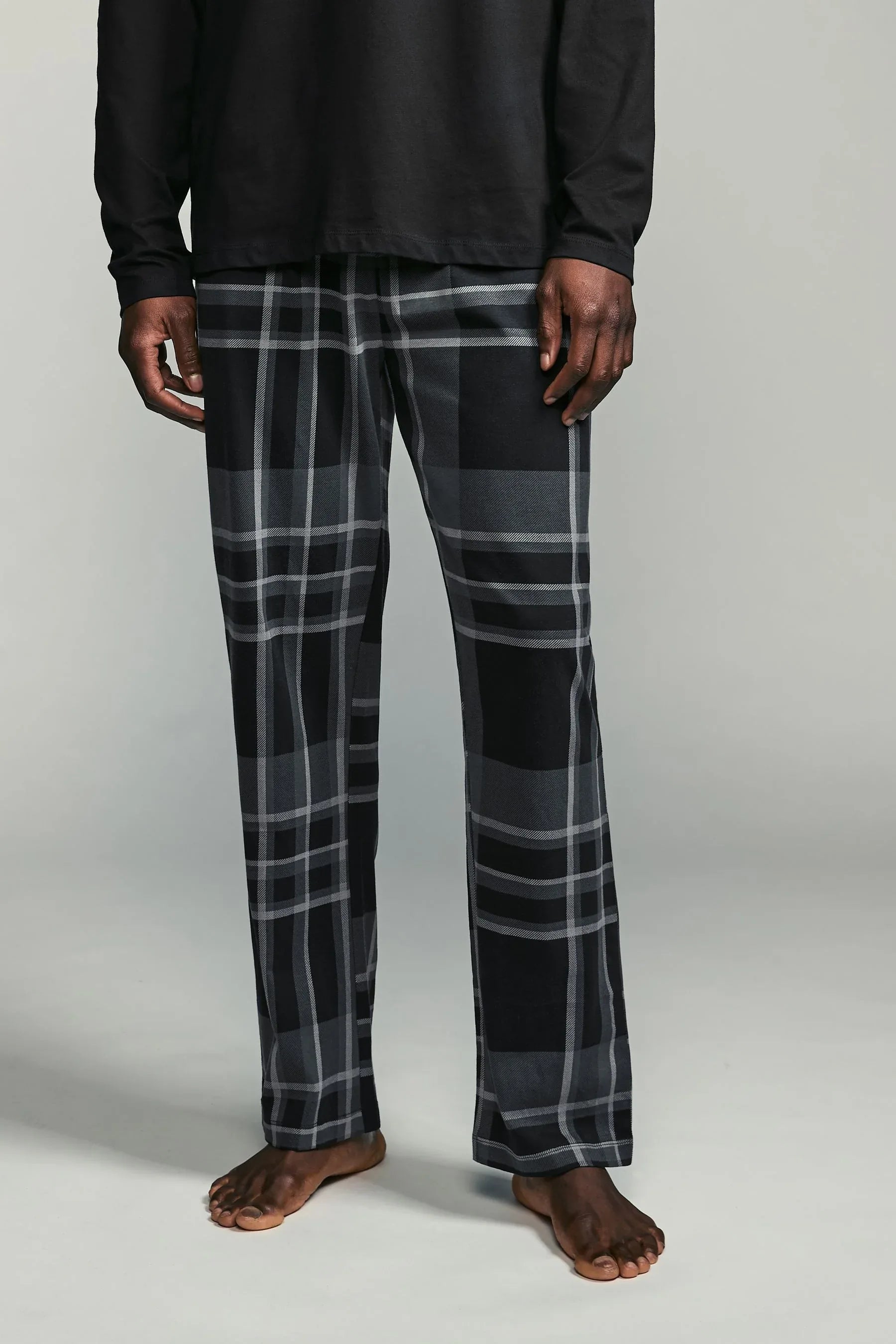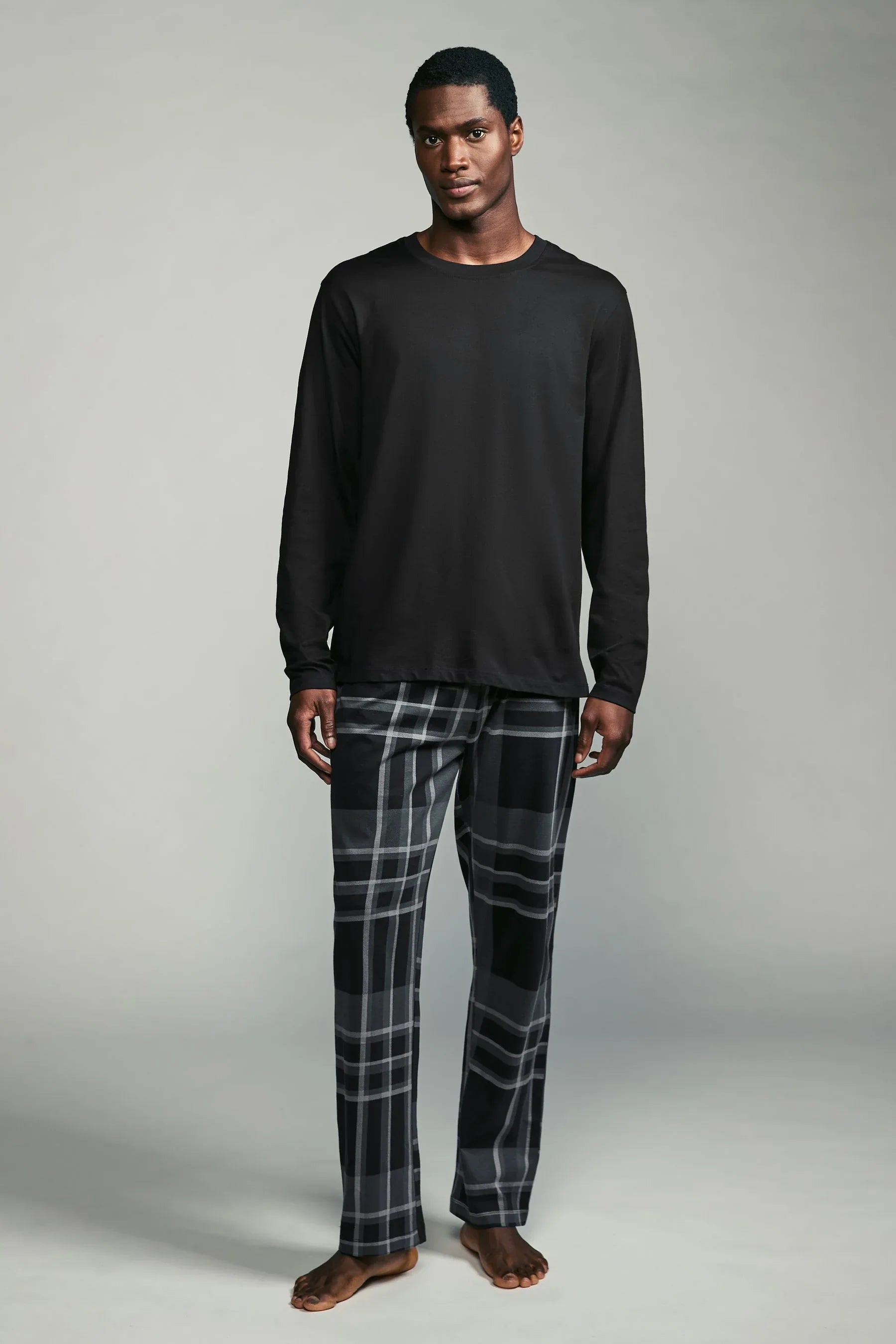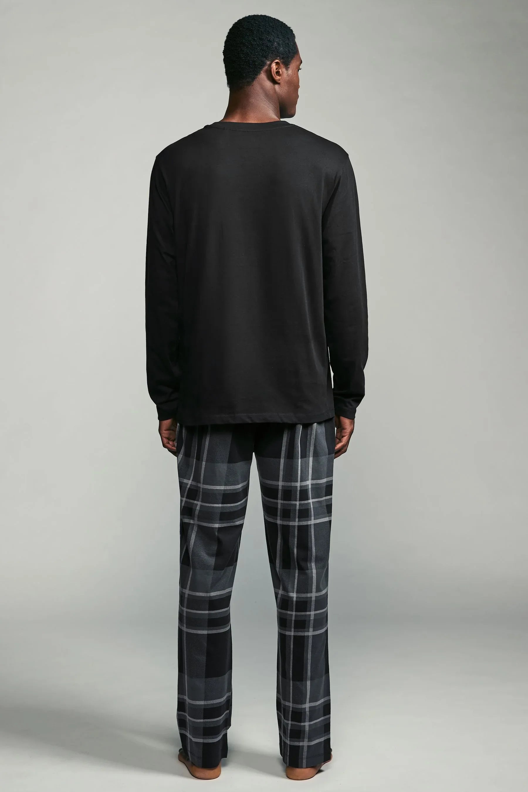 Black/Grey Check Long Sleeve Cotton Pyjamas Set