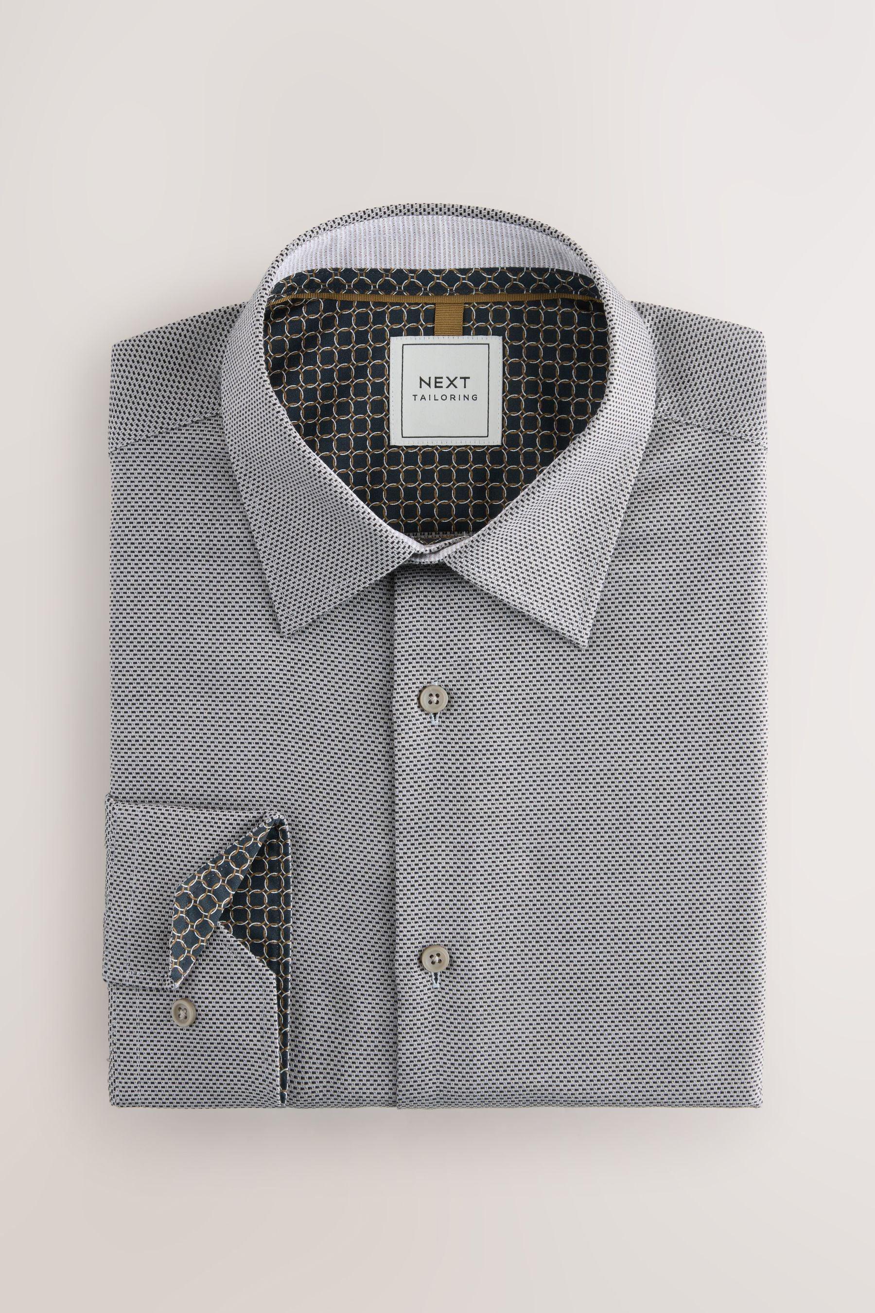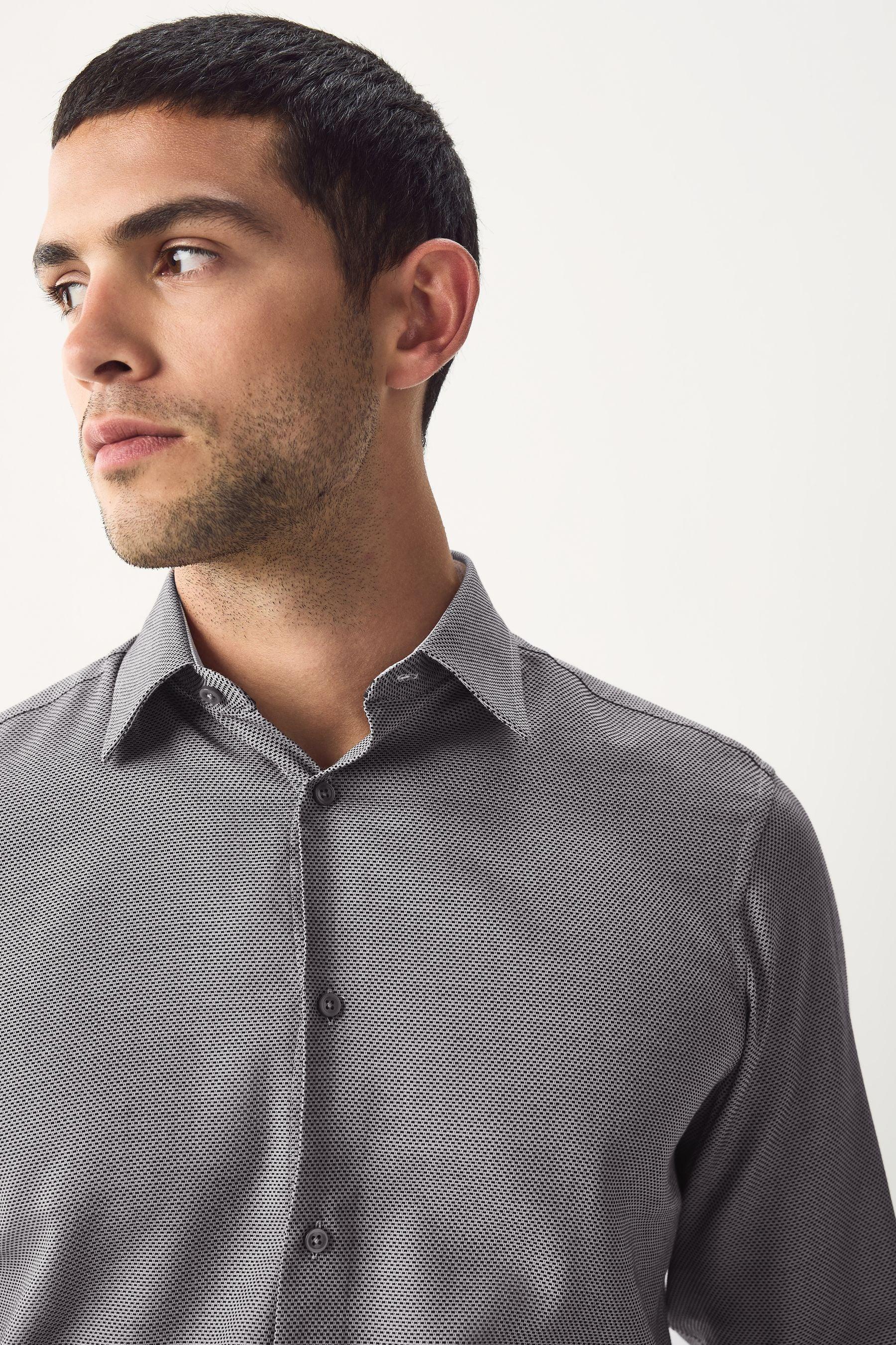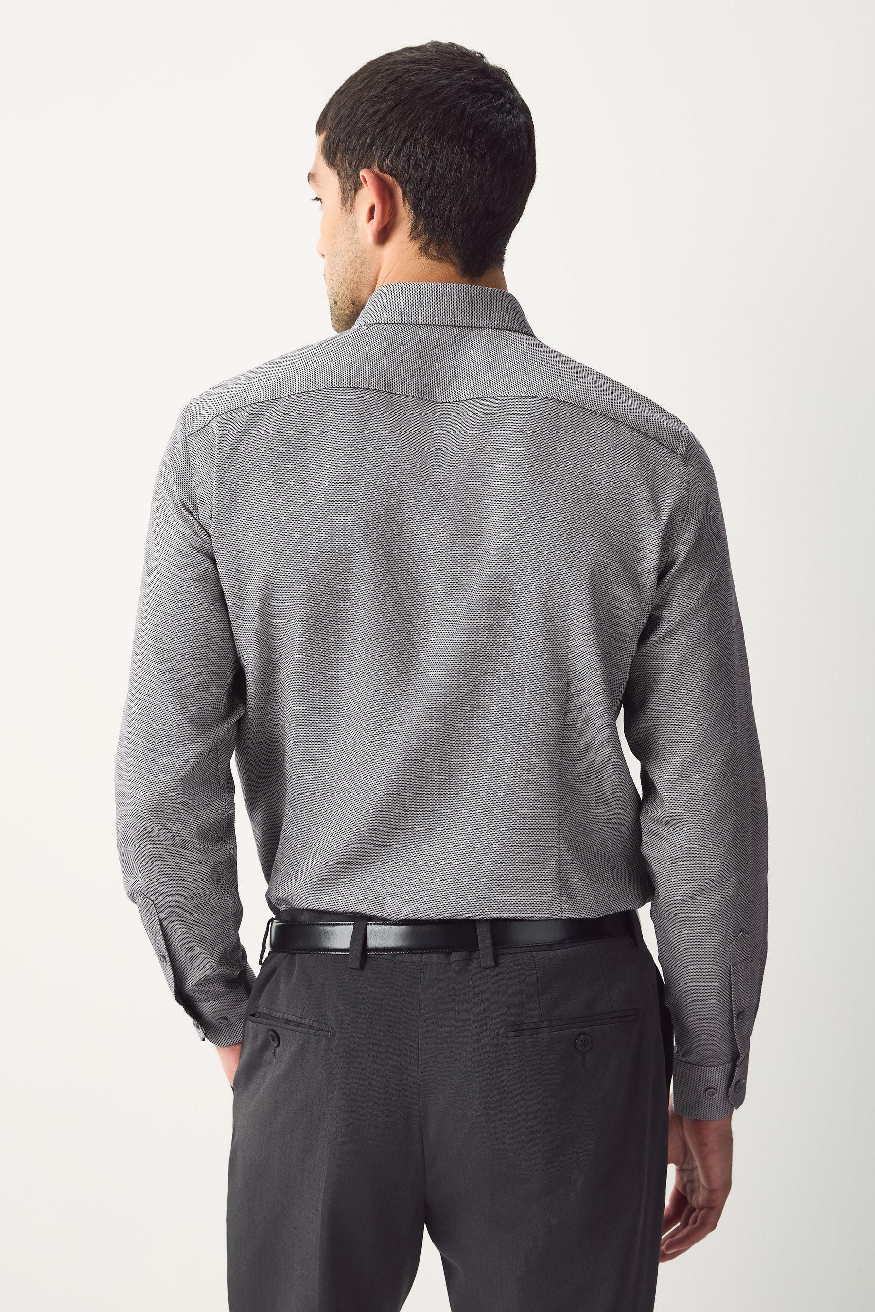 Charcoal Grey Texture Slim Fit Easy Care Textured Trimmed Shirt