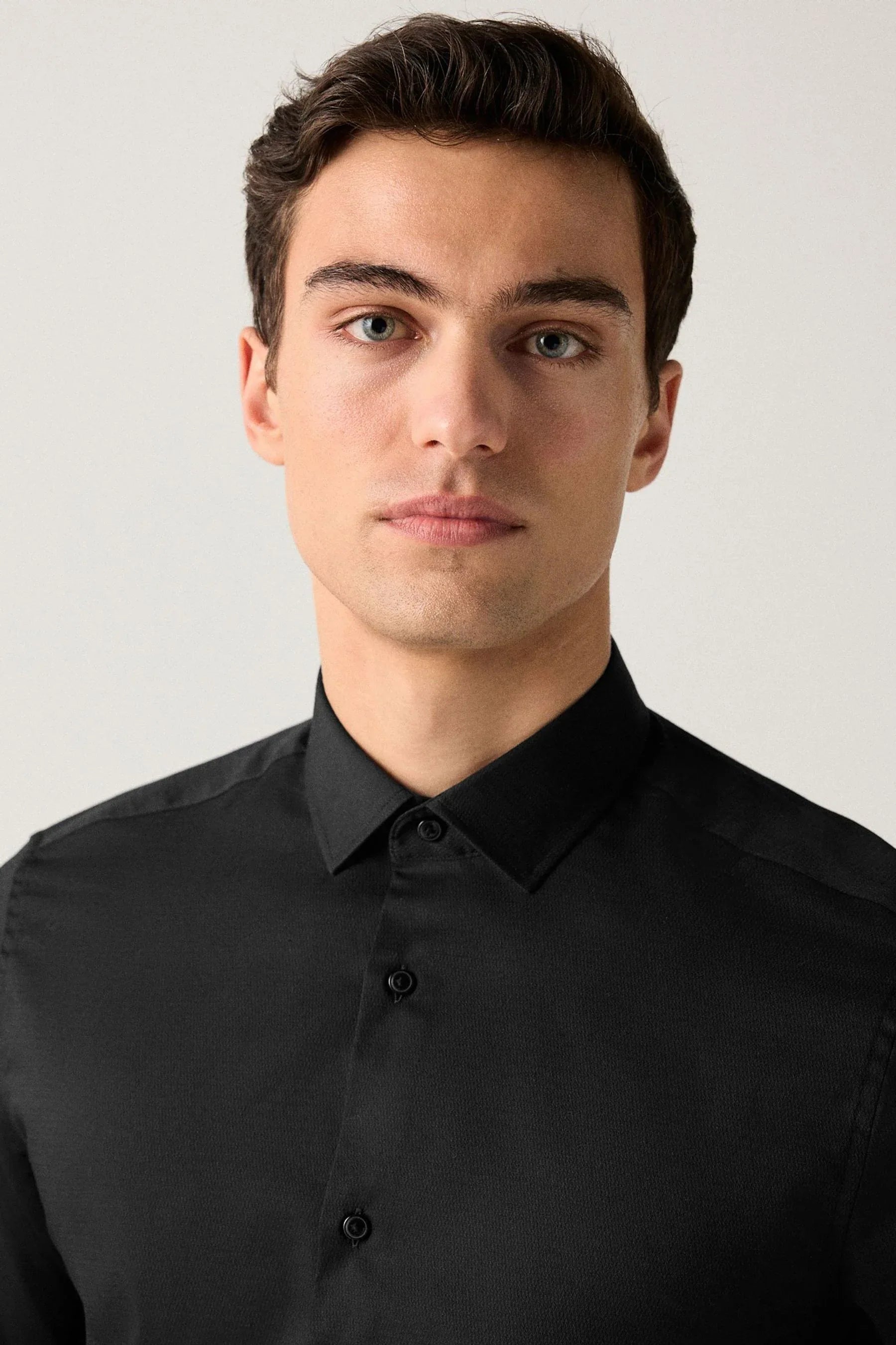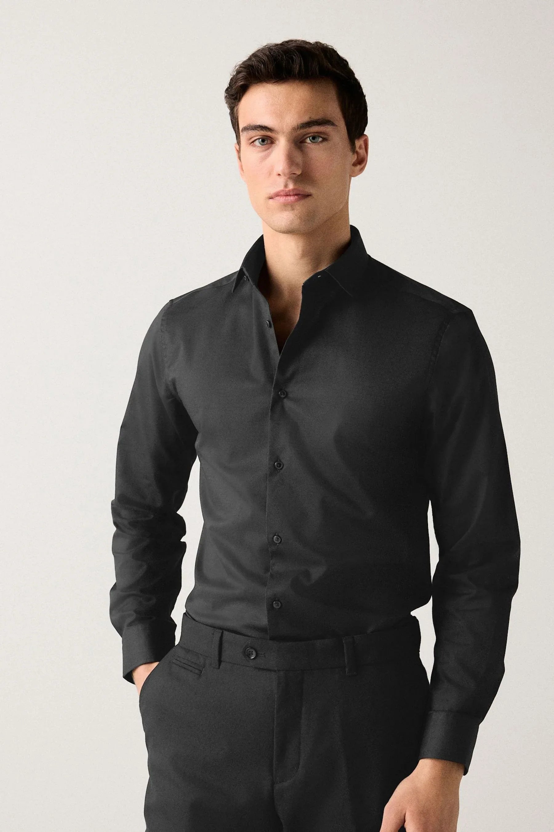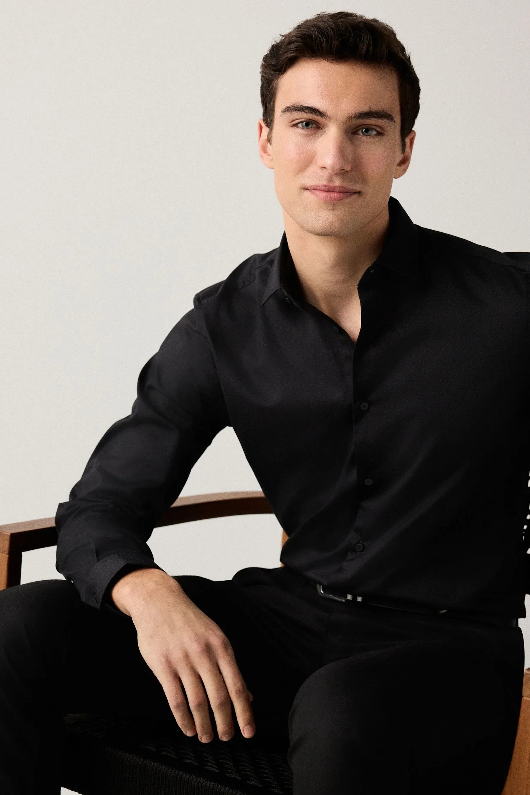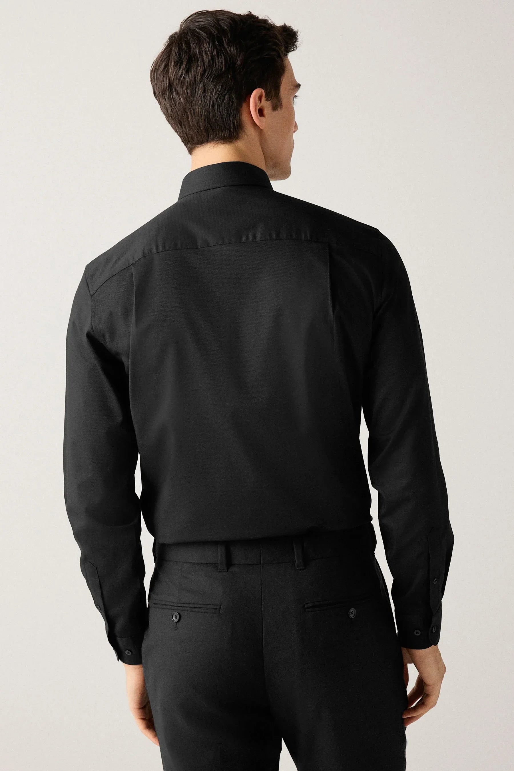 Black Regular Fit Easy Care Textured Single Cuff Smart Shirt