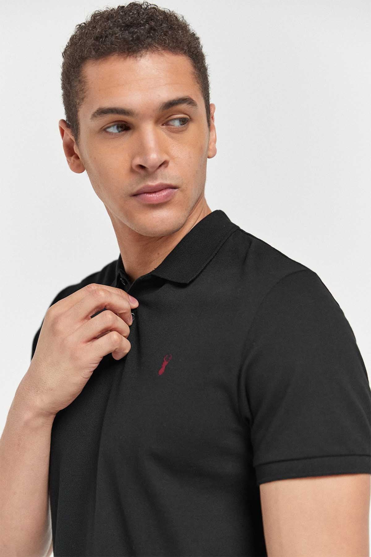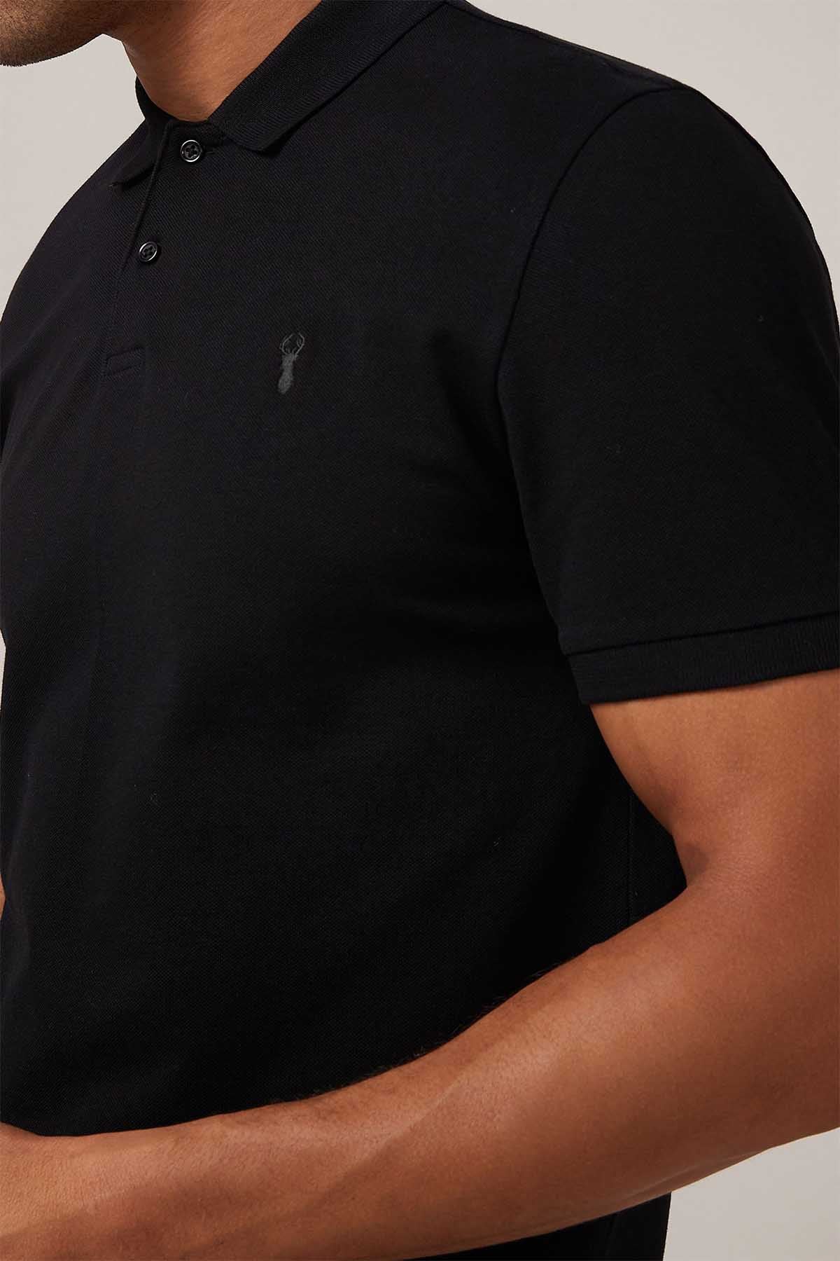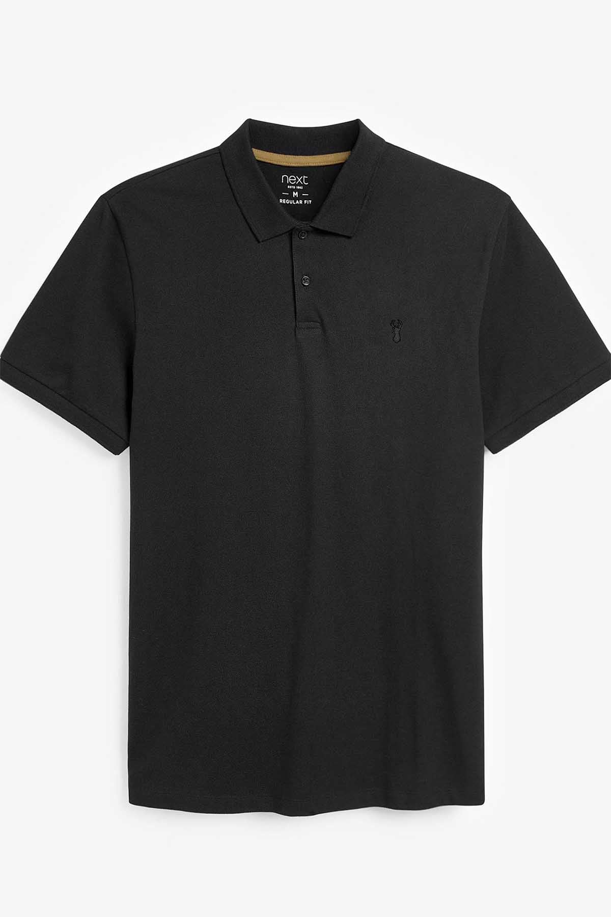 Black Regular Fit Short Sleeve Pique Polo Shirt