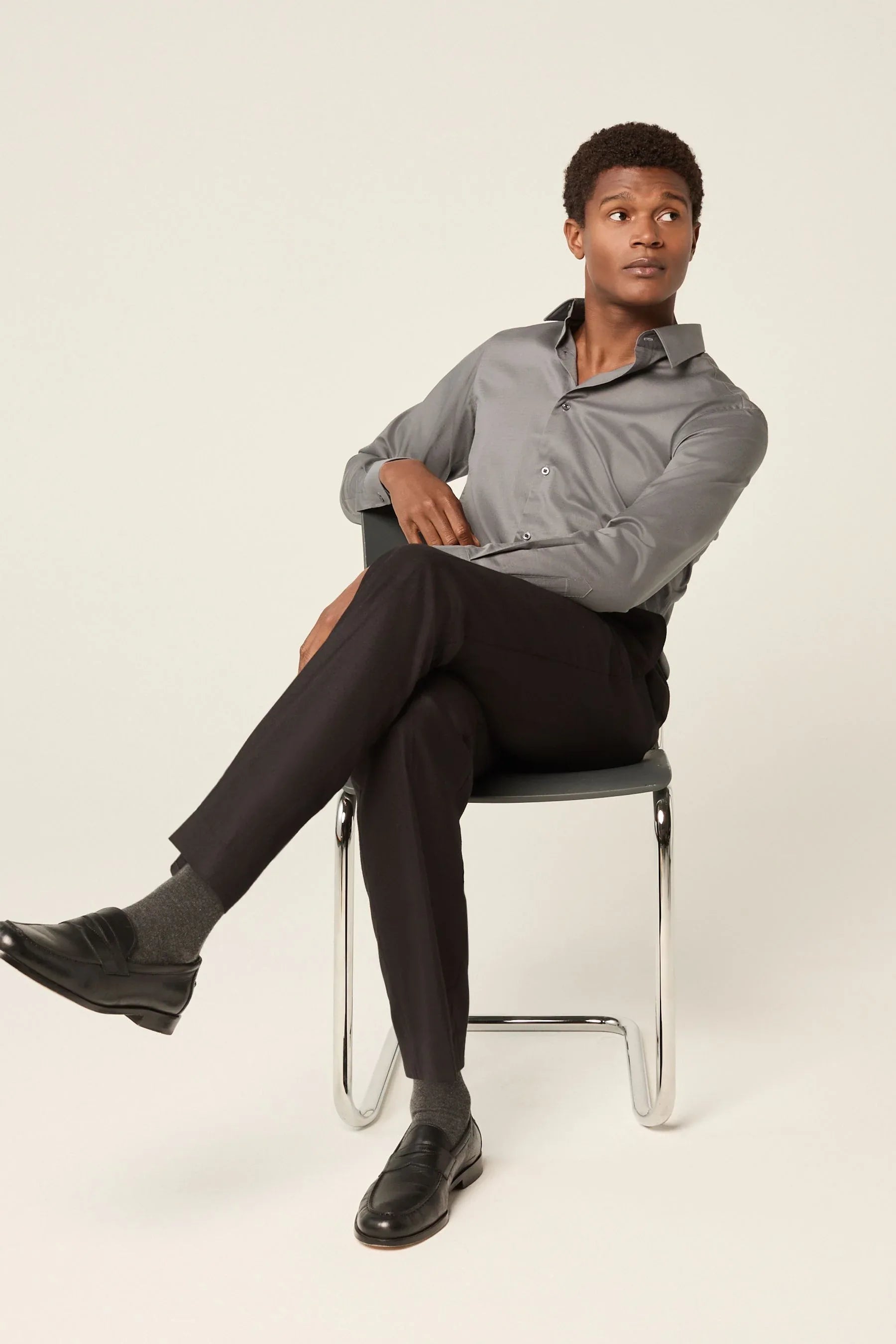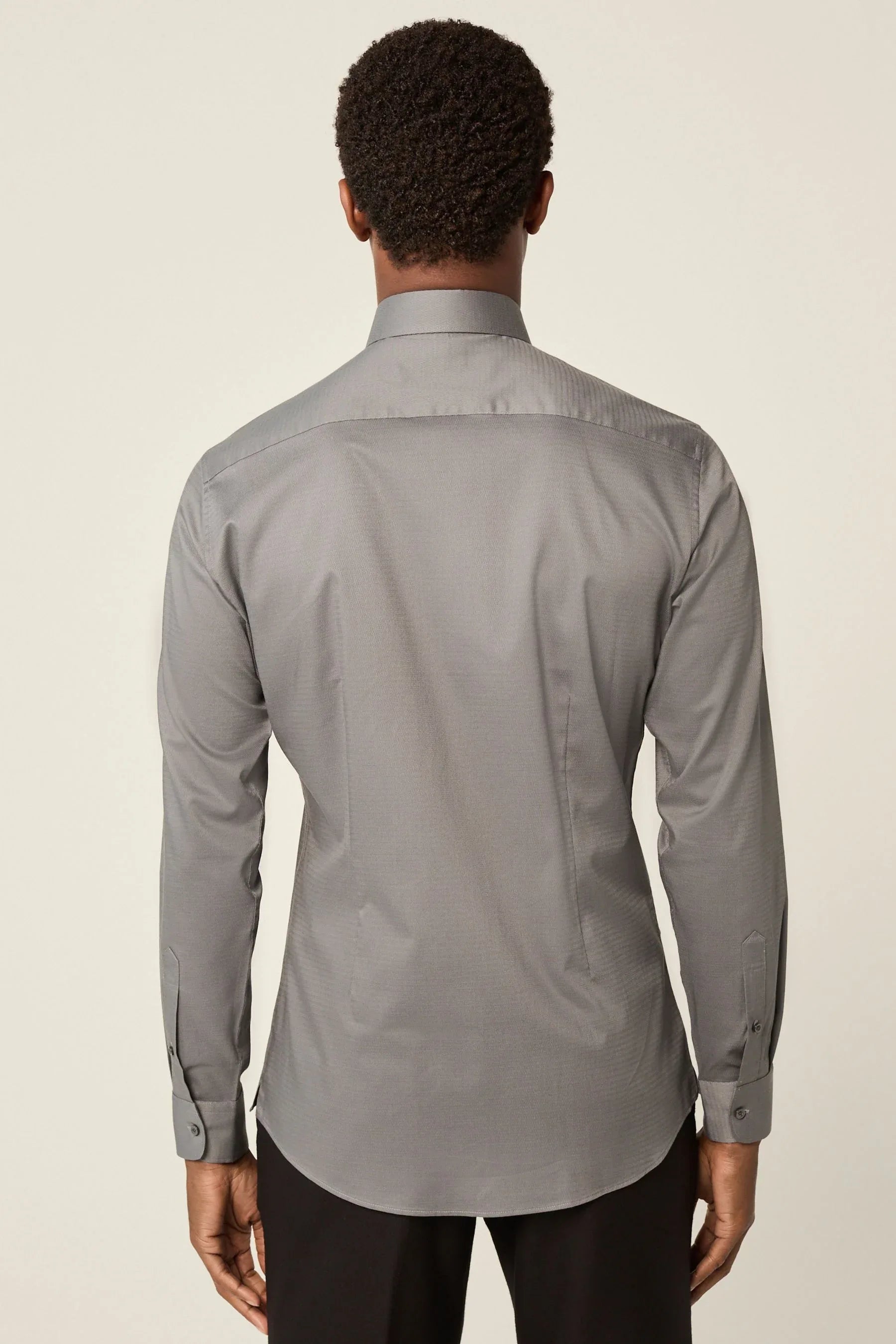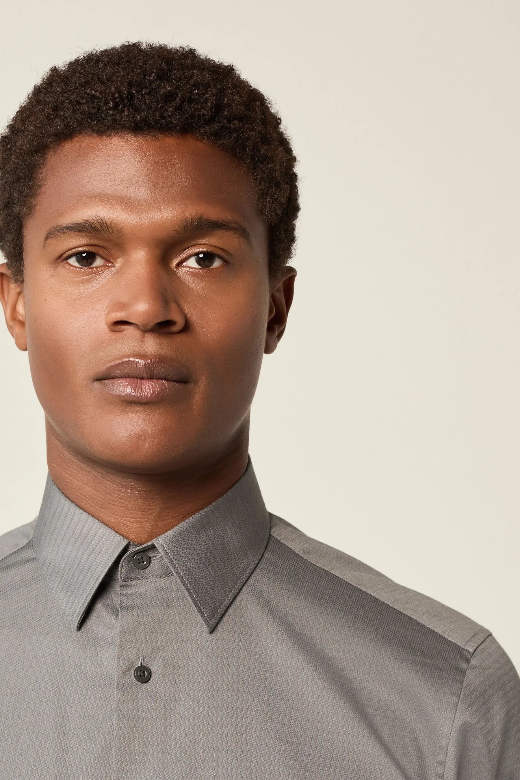 Dark Grey Slim Fit Easy Care Textured Single Cuff Smart Shirt