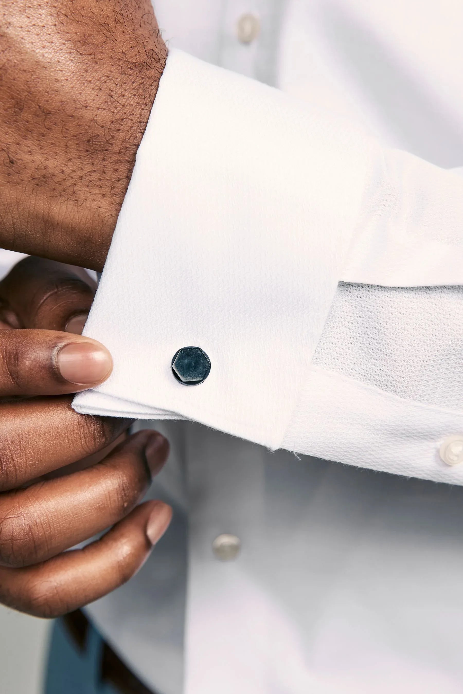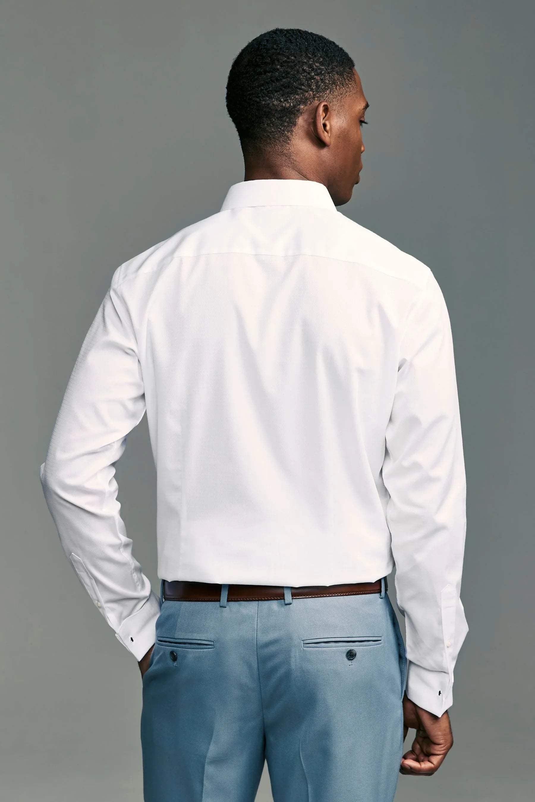 White Slim Fit Double Cuff Easy Care Textured Smart Shirt