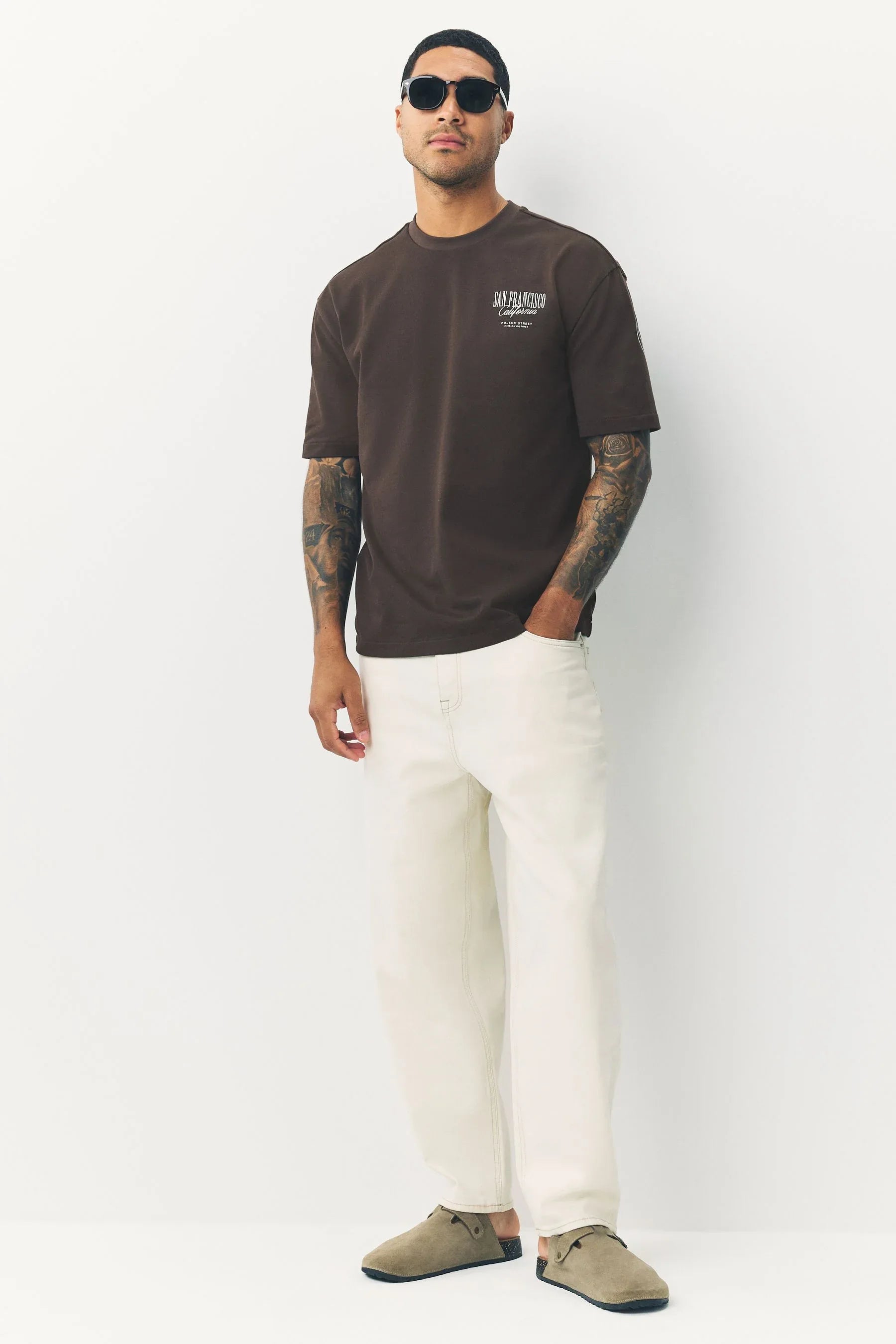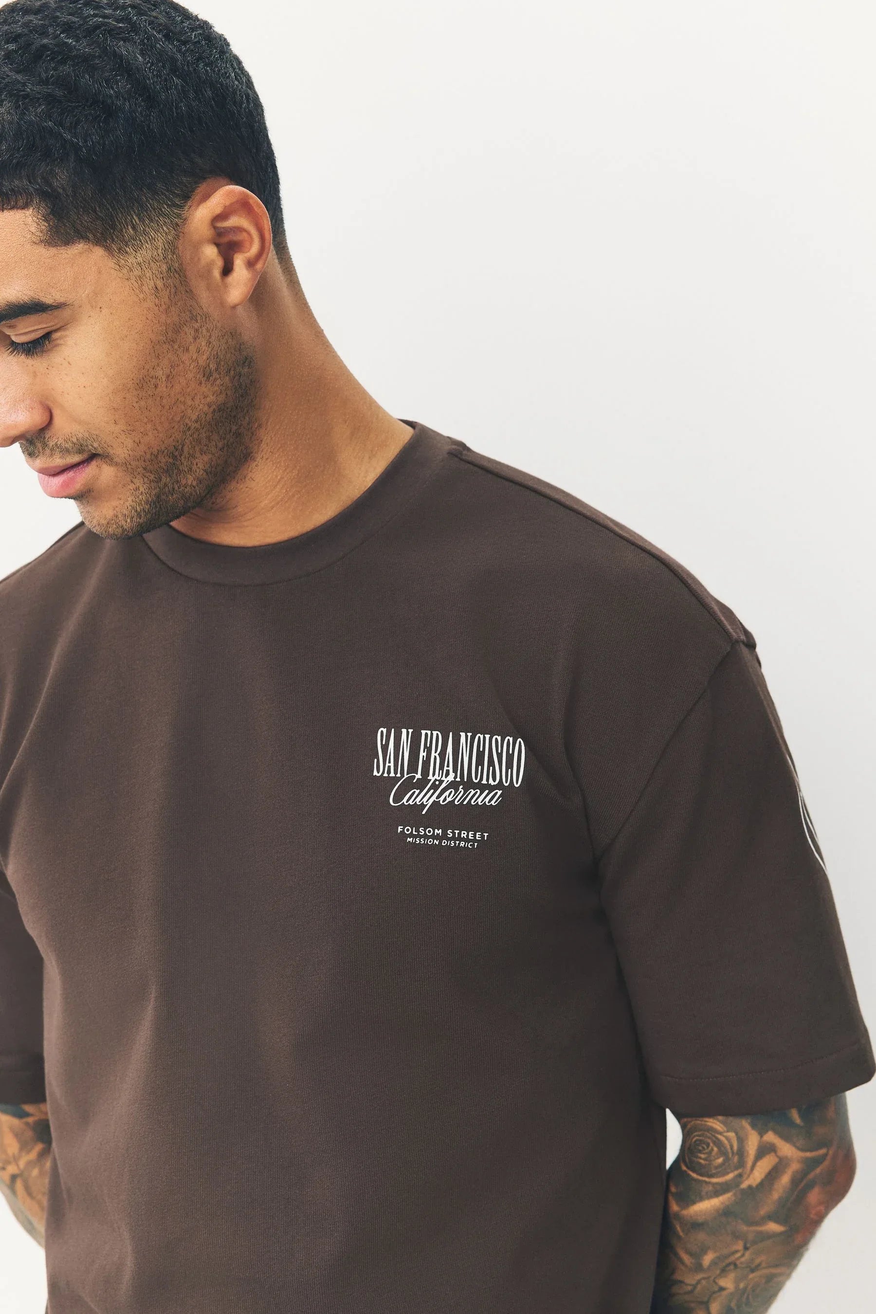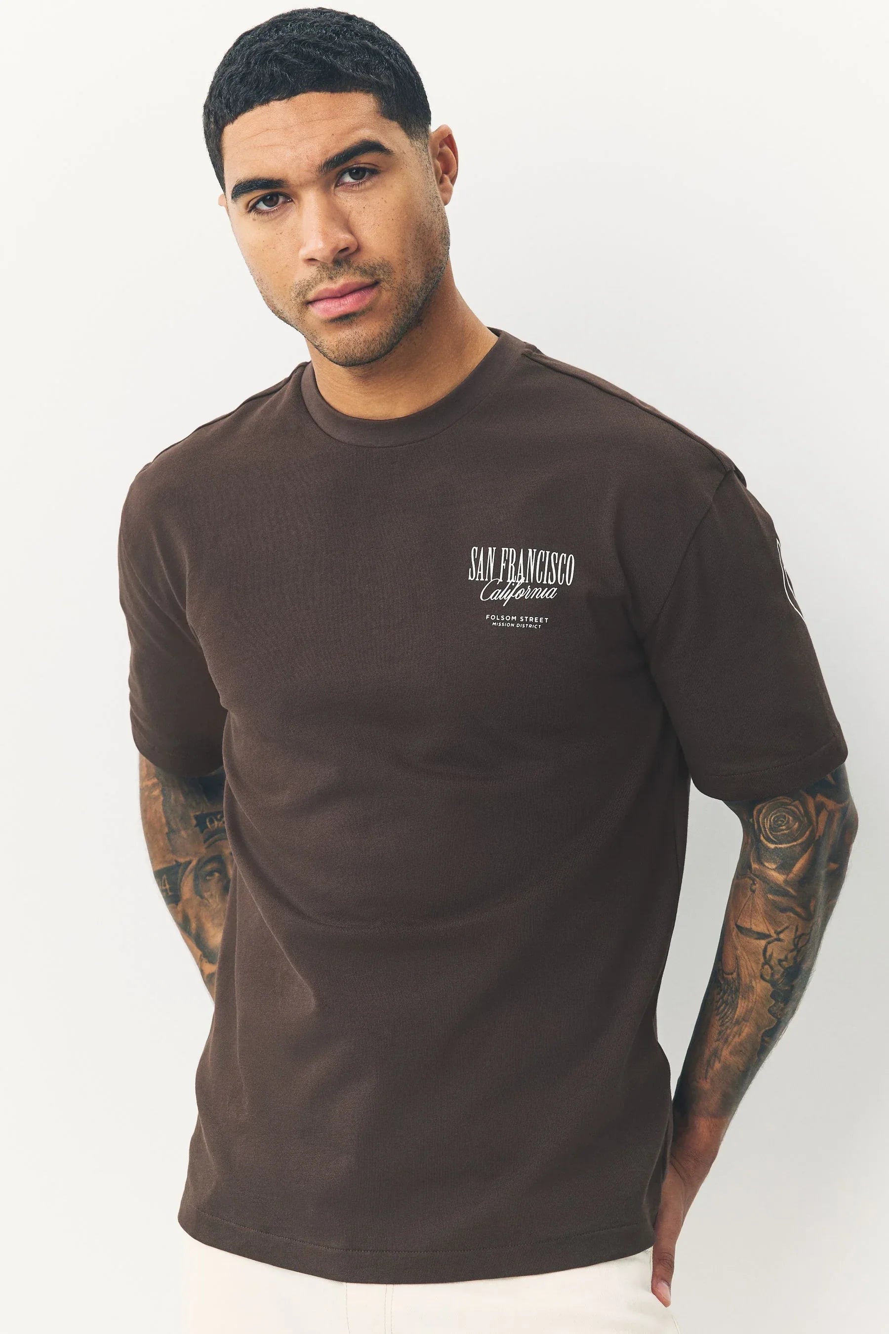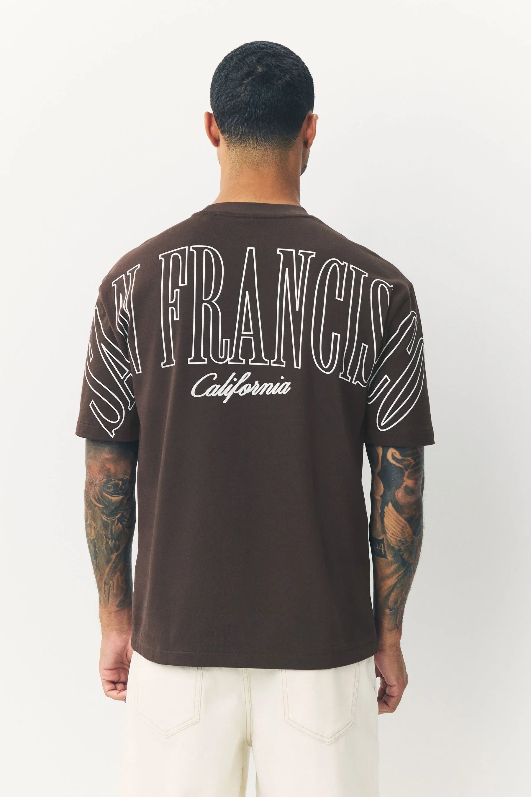 Brown San Francisco Relaxed Fit Graphic Print Heavy Weight T-Shirt